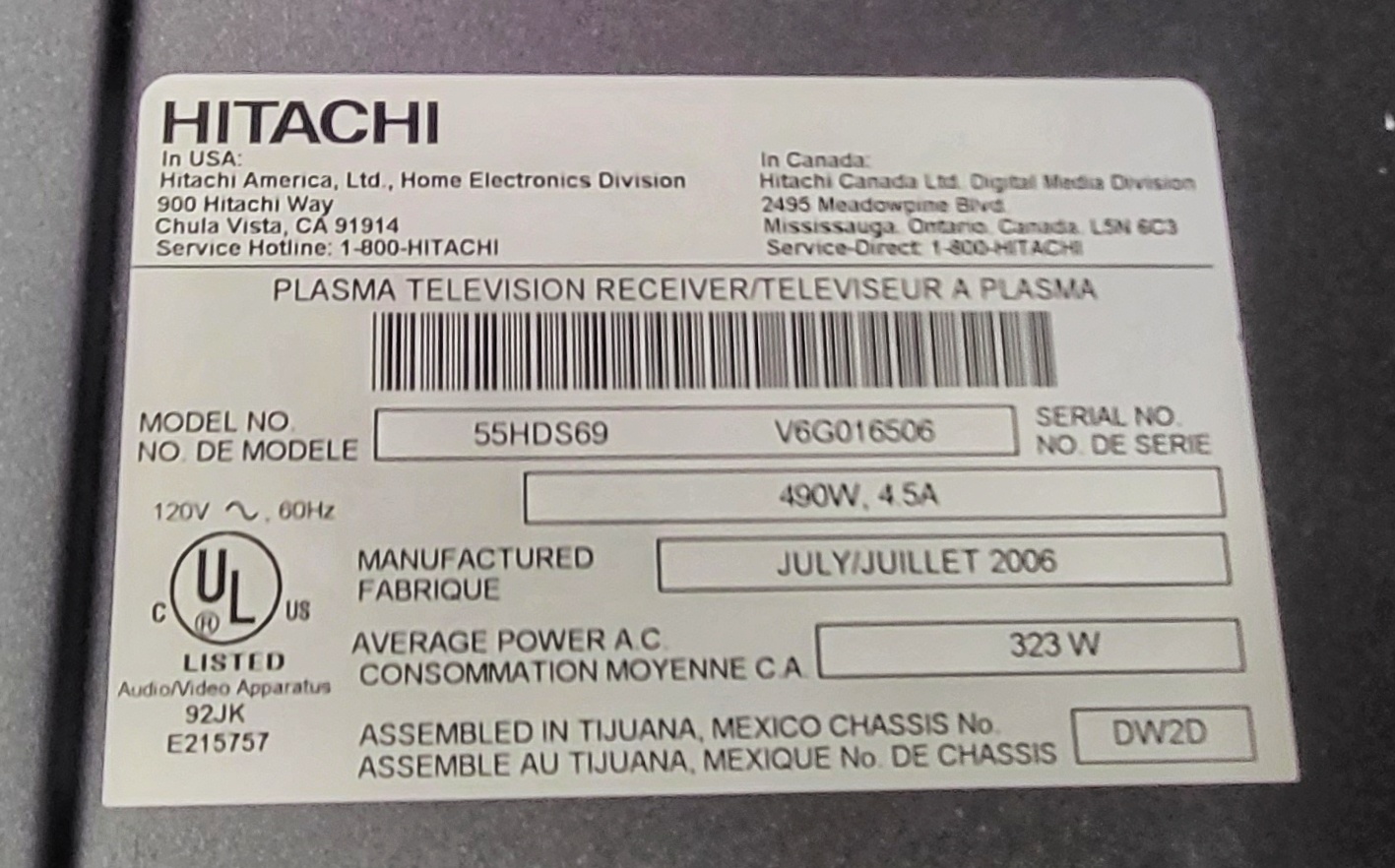 My first real TV purchase was a Hitachi Director's Series P60X901 60-inch plasma HDTV.