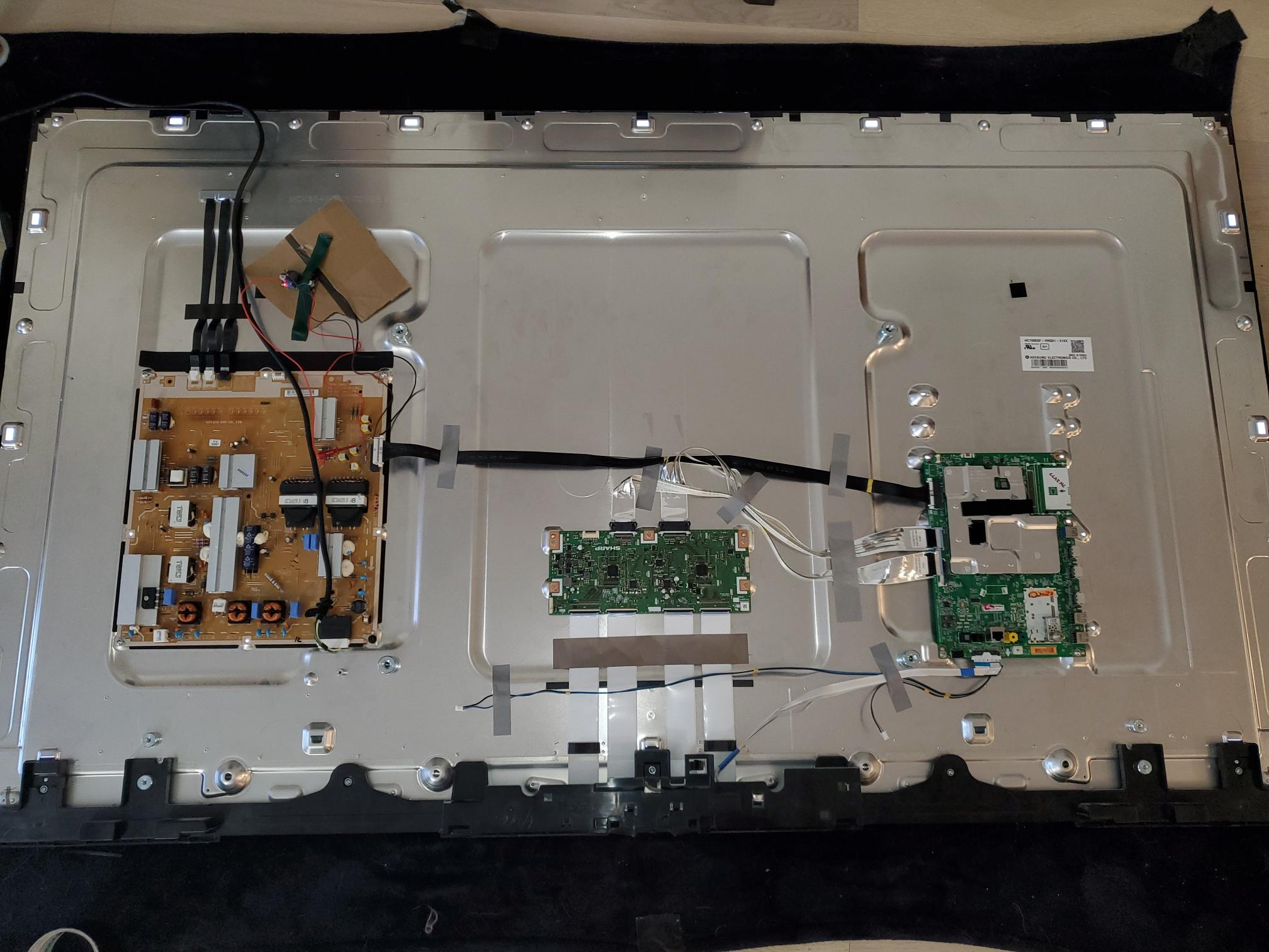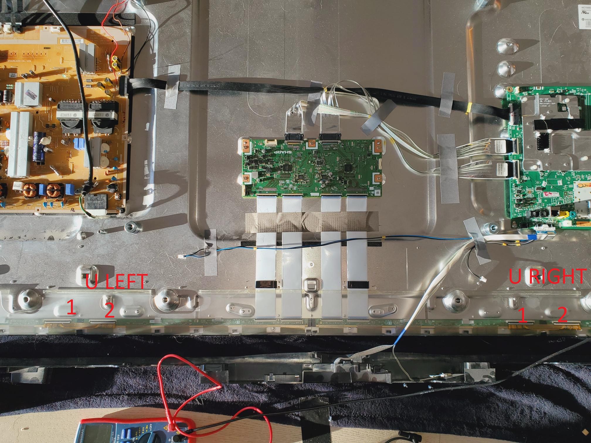 Hello folks. Pulling my hair out here having received my TV back from a local shop with a diagnoses of failed mainboard and TCON (but irrepairable due no parts availability.) Armed with some basic electronics skills, meter, and youtube this is where I got to: