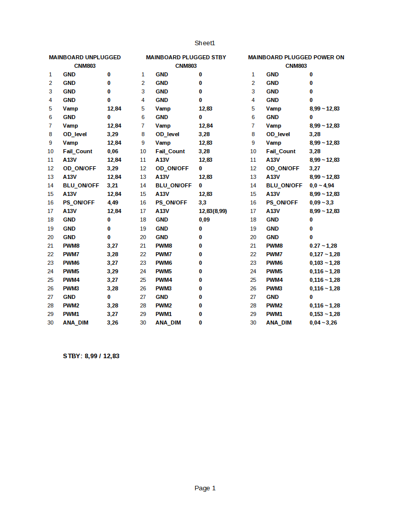 Capacitors are tested and are OK. I took voltages which are fine with MB unplugged. Attached is a picture with voltages in three different states. PSU has a jumper wire where standby is supposed to be measured, saying it should be 7.5V and at power on it goes up to 11.8V. When measured they are 8,9V and at power on 12,84V. Is it supposed to be like that?