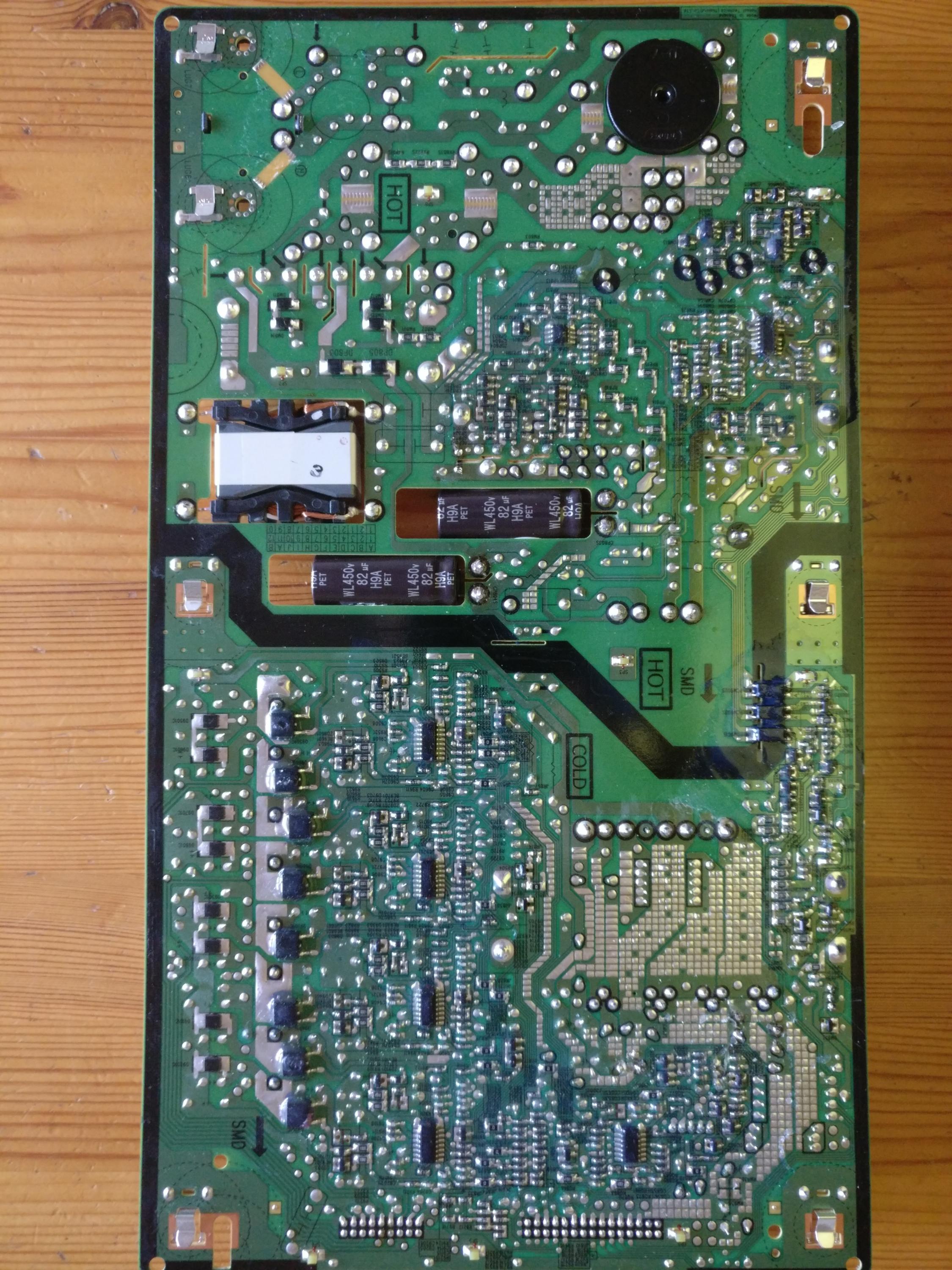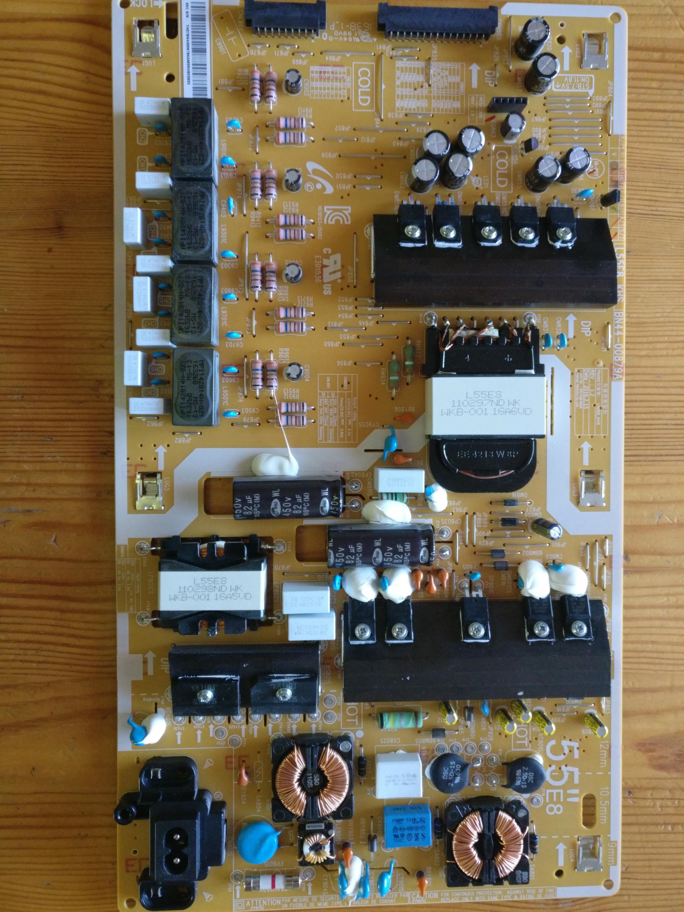 At the moment MB is plugged in, standbylight turns on, TV turns off for a couple of seconds and then tries to start. Backlight flashes bright, dims out and TV turns off while PSU is having a faint ticking or clicking noise. TV stays off for a couple of seconds and tries to start again. This power cycle happens for as long powercable is plugged.