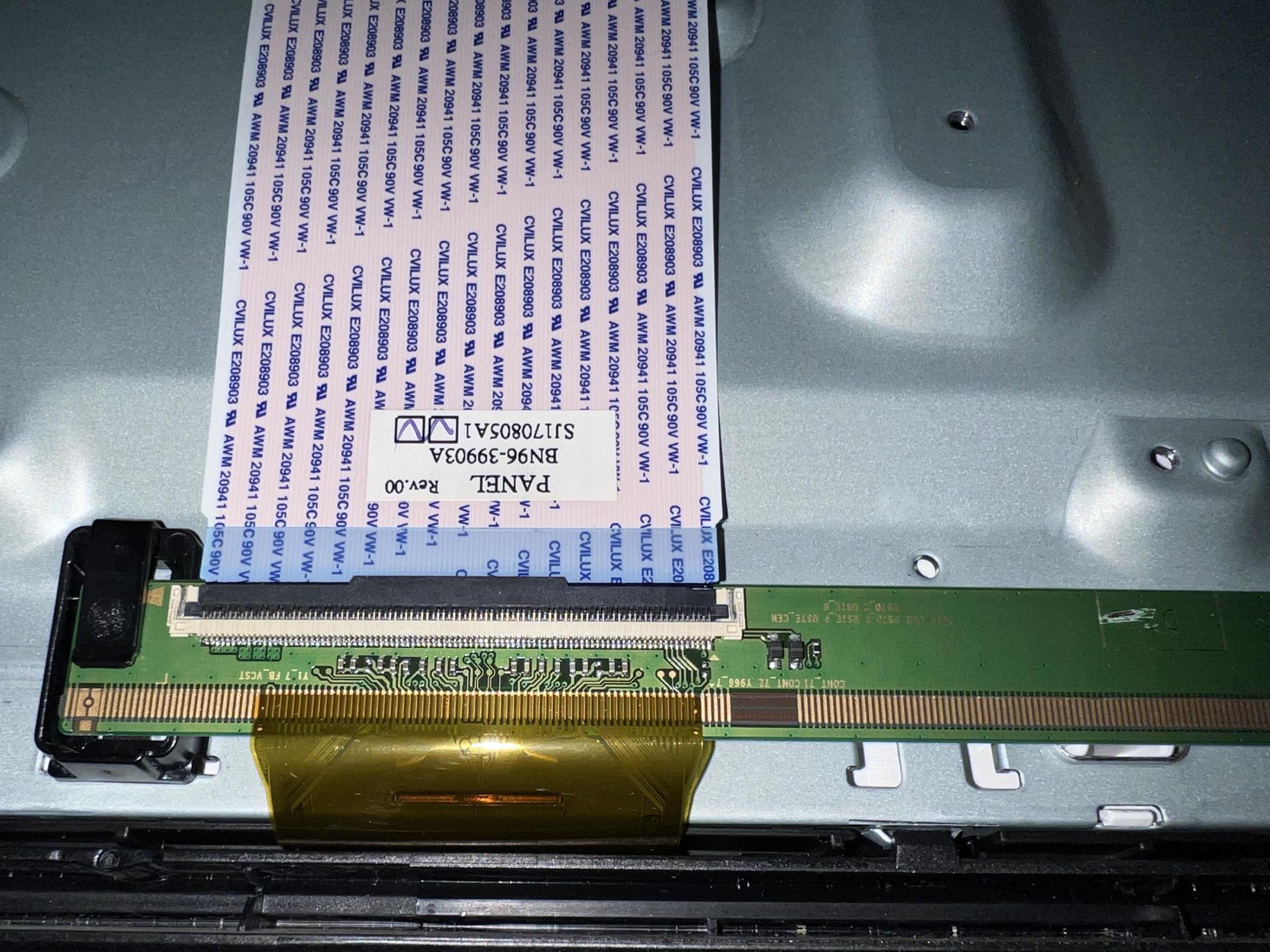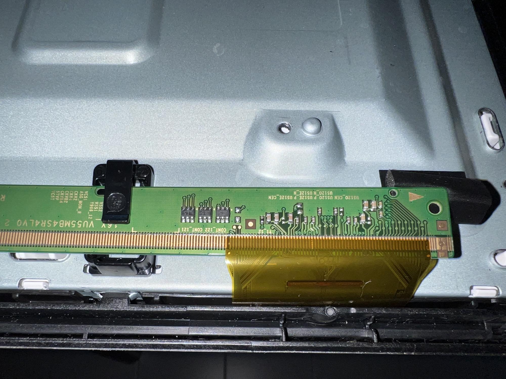 by NolesFanHello all... TV started boot looping. Opened the back panel and tried to isolate the problem. Just PSB no boot loop. PSB and MB no boot loop. Plug in the LVDS from panel to MB and boot looping starts up. It doesnt matter of order that I plug the LVDS ribbons back in, only 1 and no boot loop but as soon as 2nd one plugs in boot looping. I then noticed a flicker on the screen when I was closing the clip on the harness to the LVDS. Shut the lights off so I can see better, and I noticed as i slowly close it, I will get a picture, but as soon as it clips in, I lose picture and booting happens. So I...2 Photos