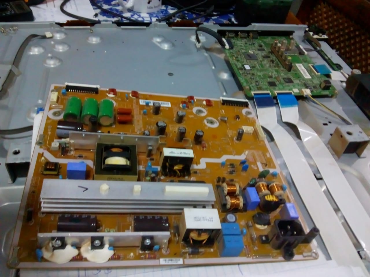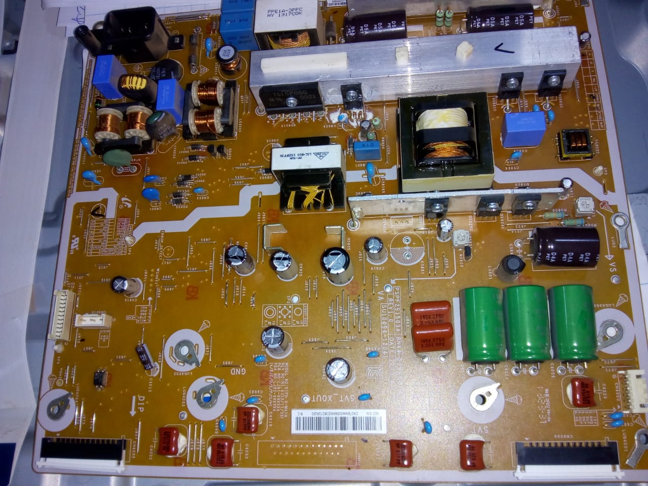 This model has an integrated sustain board with the main power supply. I repaired it about 2 years ago (mosfets) but i may have missed a further issue since the tv worked fine.