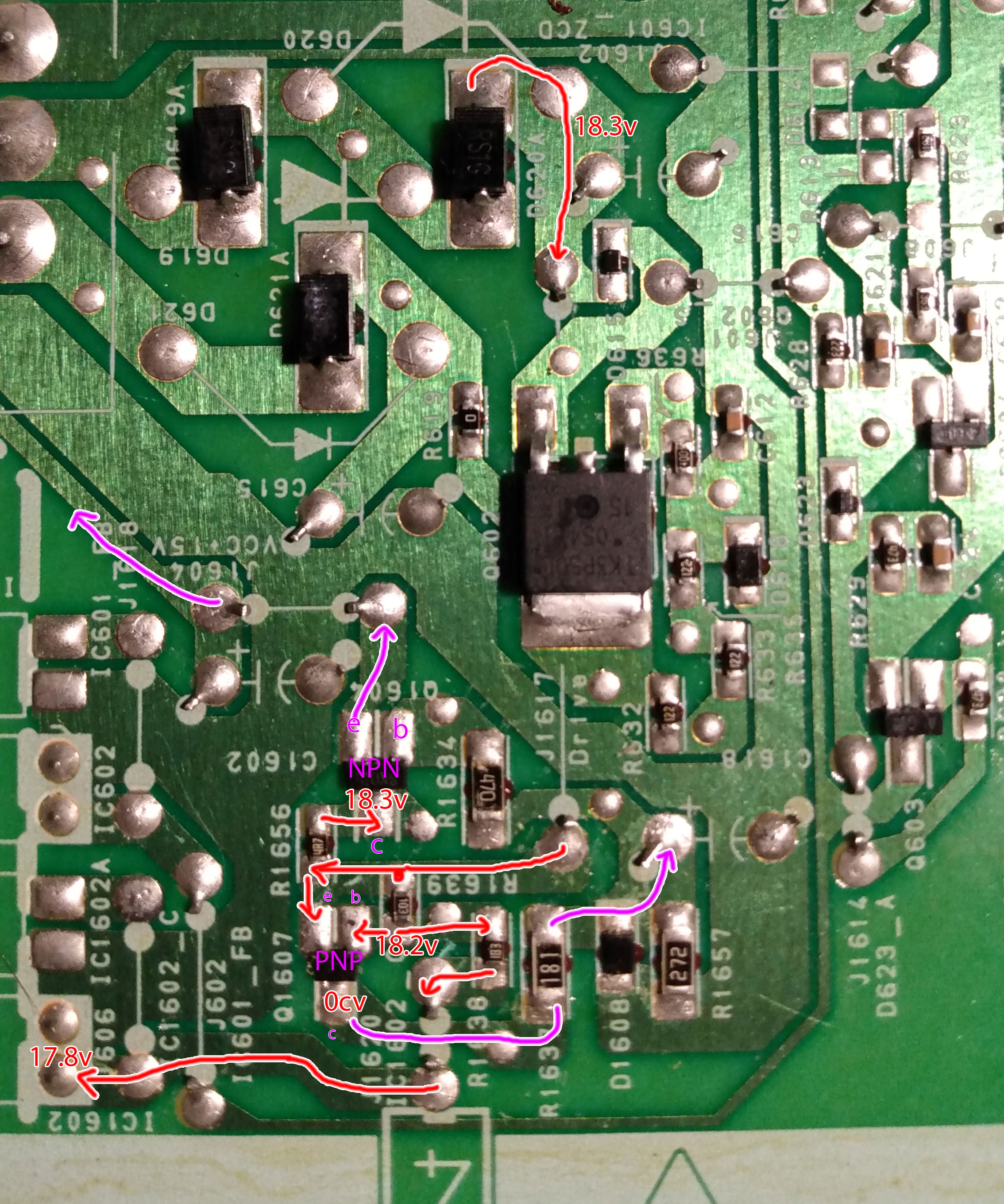 i can see that this base should get some voltage from C1618 thru 47 ohm resistor R1634.