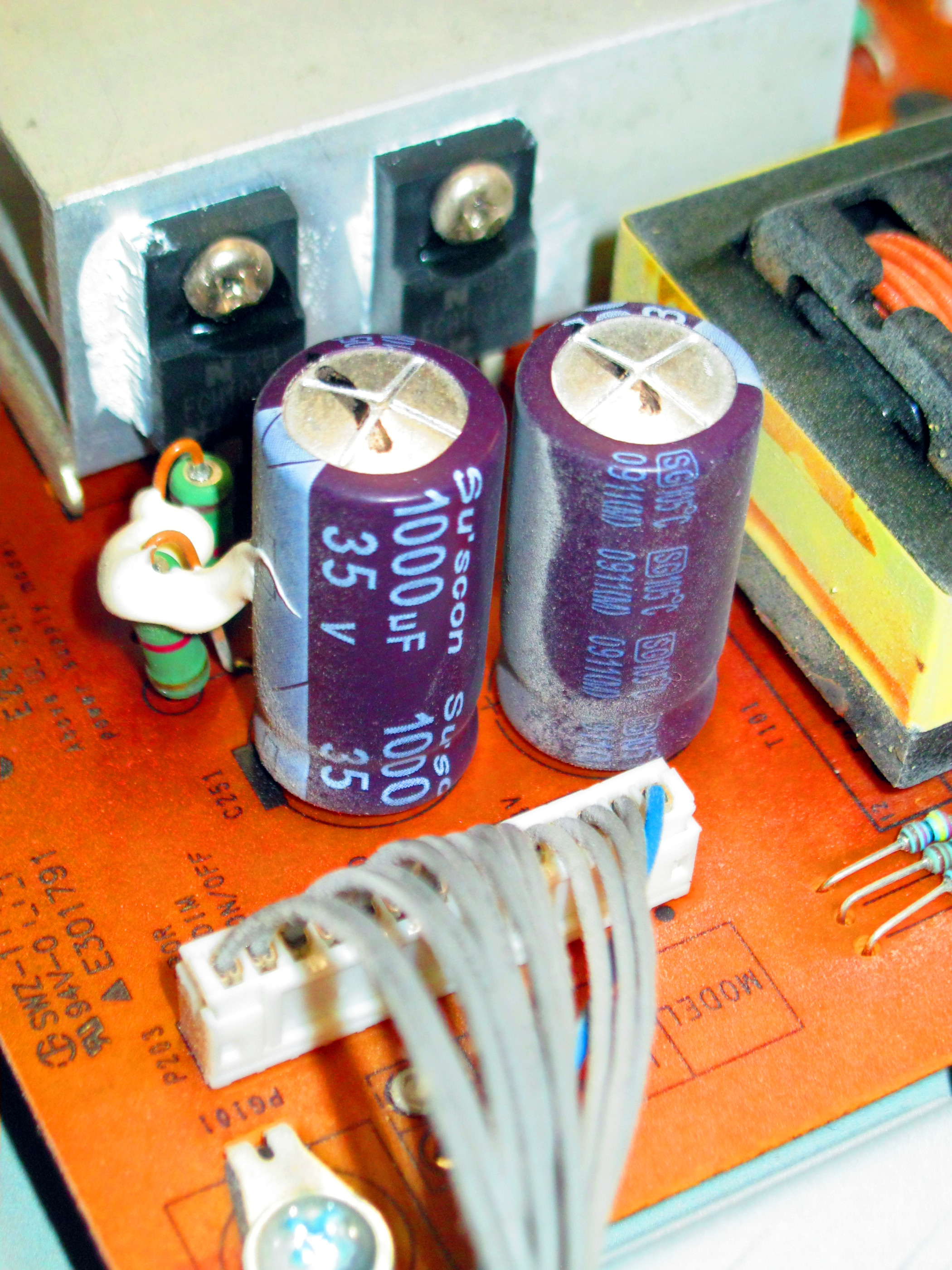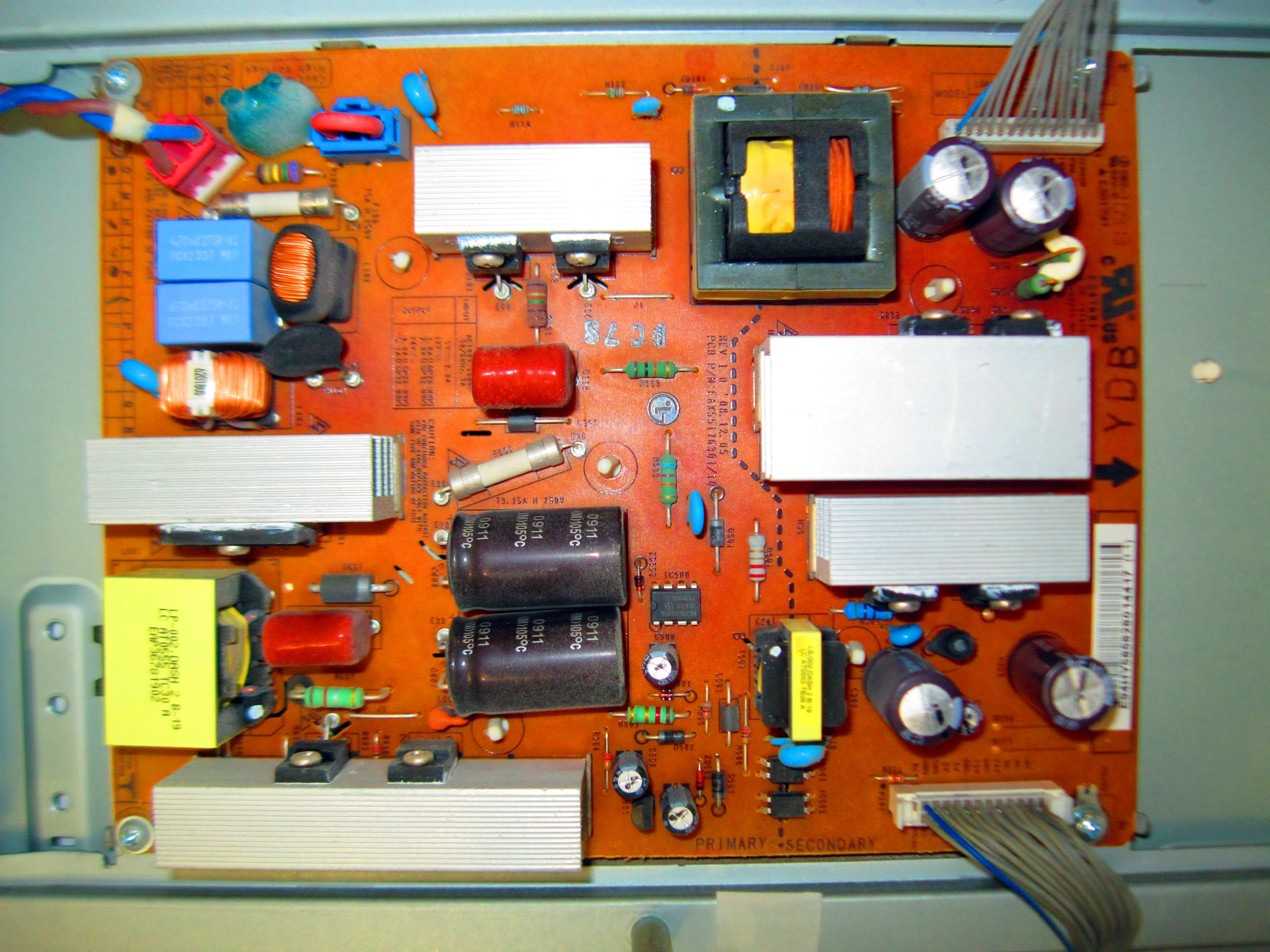 I recently replaced the caps in my TV. Model and power supply part number is in title. I wanted to upload the info in case it will help others. Example, TV works but sort of iffy and don't want to disassemble or caps blew up beyond recognition. If one gets confused as to polarity, this should help too. The caps are about gone but still in one piece, just expanding a bit.