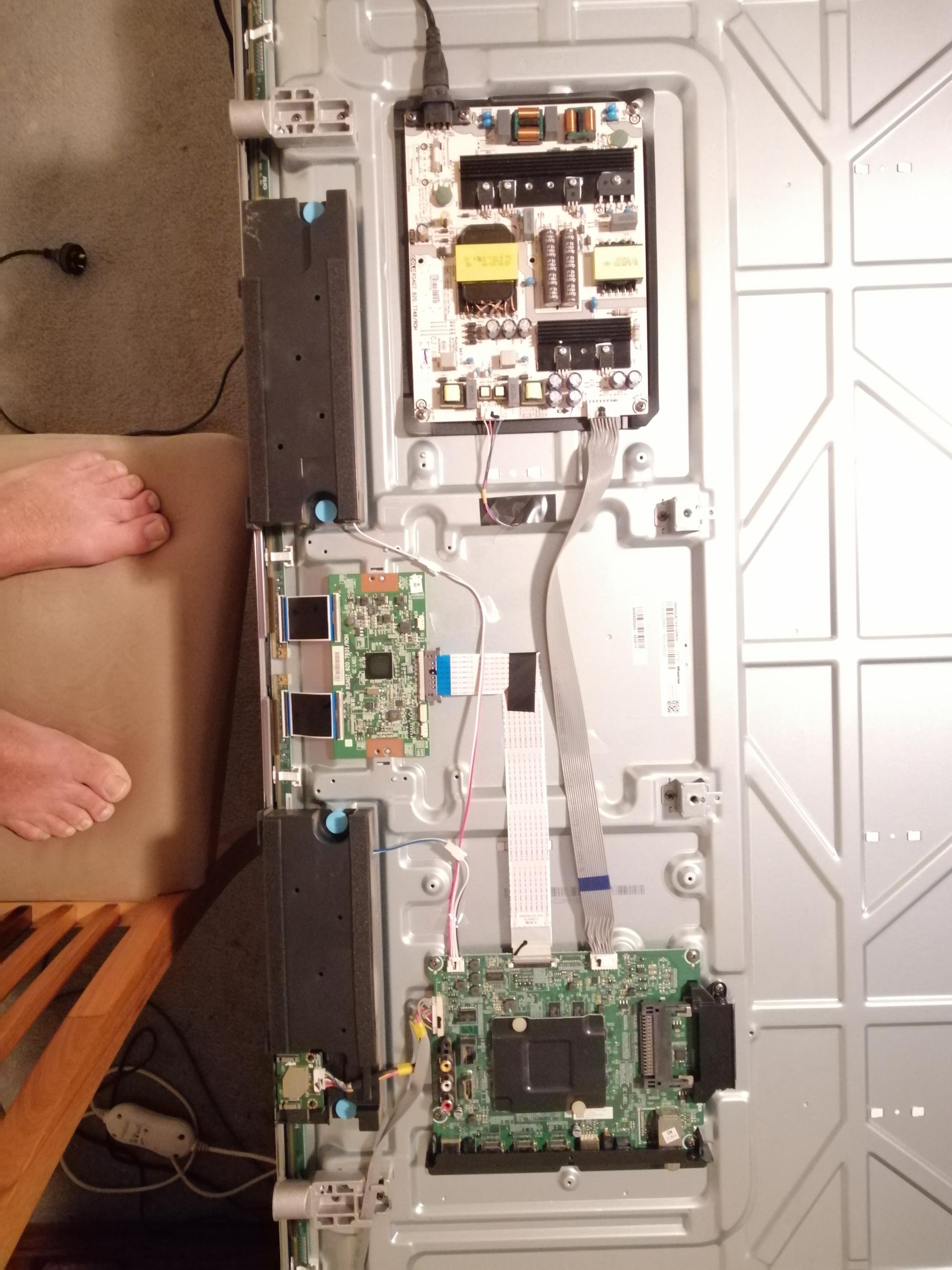this ULED had full array LED backlight. from first look after remove the back cover with dozens of screws as 2 part cover. i found the ribbon cable at the panel side they was not correct fitting in place ( see photos before take the T-CON driver boards & After.) my wounder which...