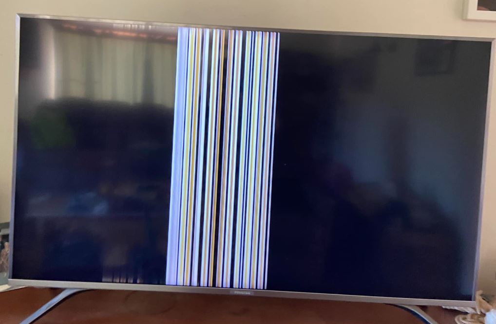 the TV is powering up, working as normally and picture is all good, except a 1.5-inch-wide vertical line of snow/static across the screen.