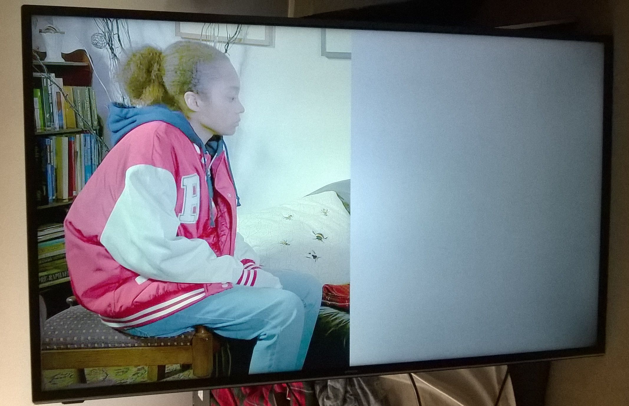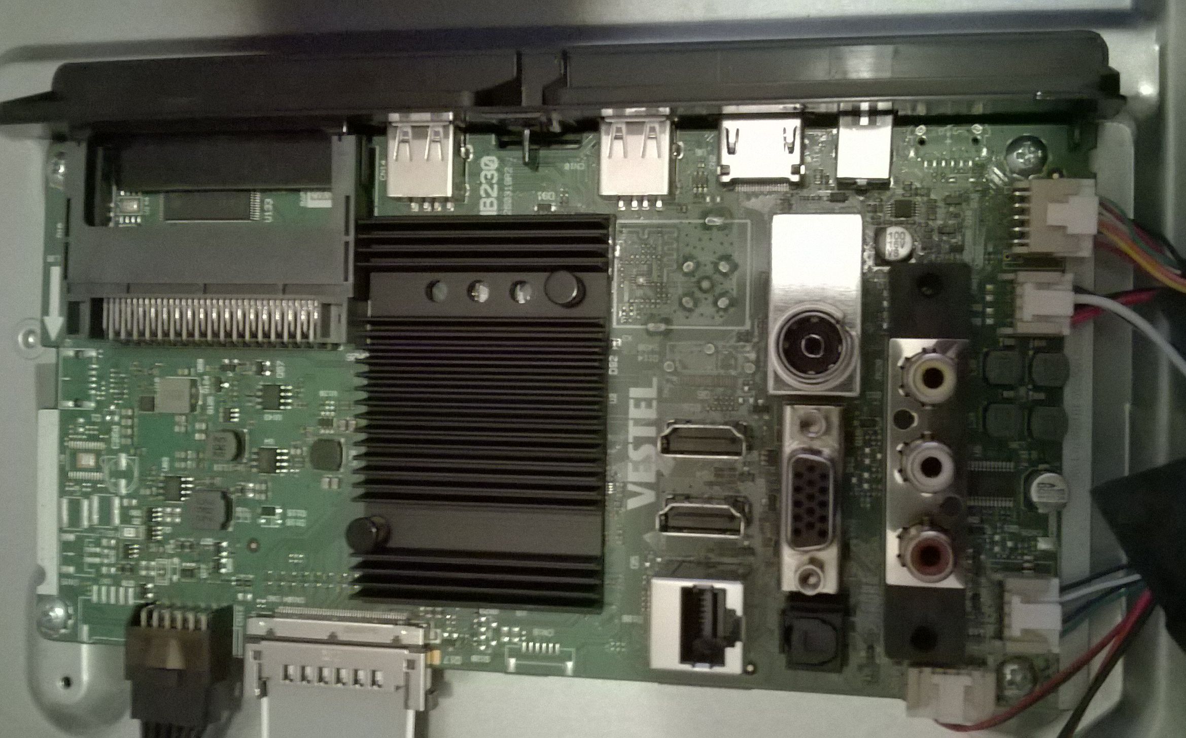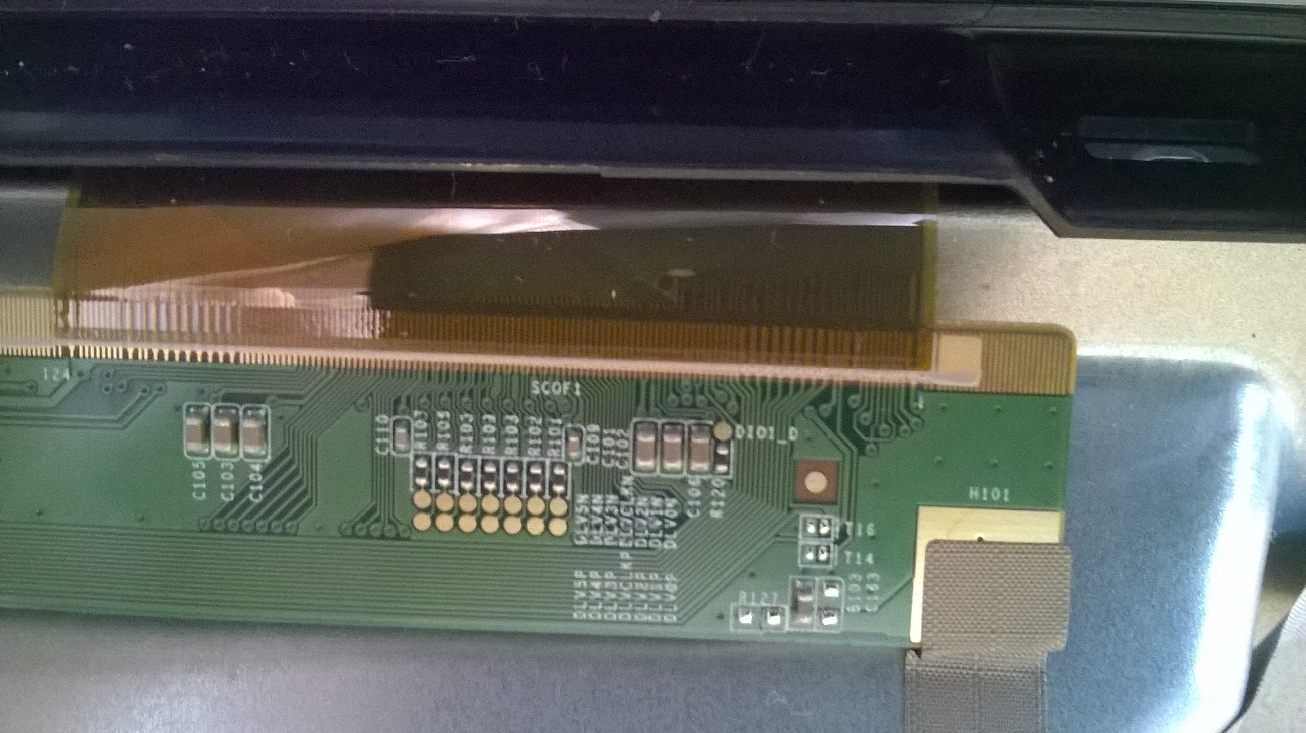 by MDY94I own a Hitachi 50HK6100U with a display fault. After some troubleshooting, I've found that removing one tcon cable produces a clear image on the side still connected. Removing the other tcon still provides display output; however, this is a heavily distorted image. With both cables connected, only the top ~25% of the screen provides display output which is still distorted. It's only when both are connected that most of the screen no longer provides output. The attached images show the screen with each tcon cable disconnected, and one with both connected. The red line shows where the display cuts...3 Photos