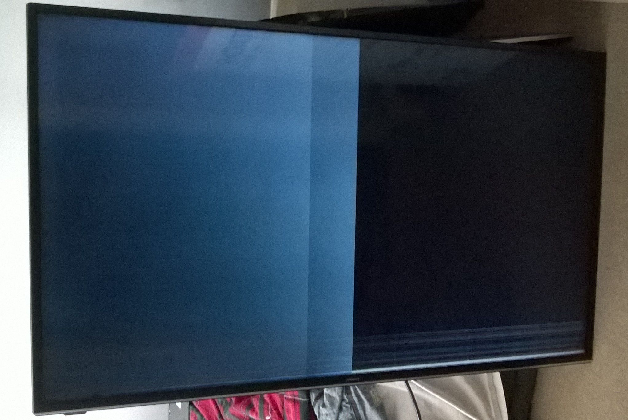 The right side is not working. Let him turn off the left side and connect the right side and post a photo of the image.The price was reduced to £15 so I bought it thinking I can sell the parts if I can't get it working. I removed the right hand side cable from the T-con board and I get a good clean half black and half white screen. If I plug and aerial in I get a slightly polorised picture but no striping. When I removed the left hand side cable from the T-con board and plug the right hand side back in, I get striping and no picture. I tried the tape trick but it didn't work. I tested all the caps on the screen buffer boards but there are no shorts. I tested the T-con board (CCPD-TC495-008 V4.0) and Vcom is 6.8v VGL is -5.8 VGH is 24v and VDD is 15.2v.