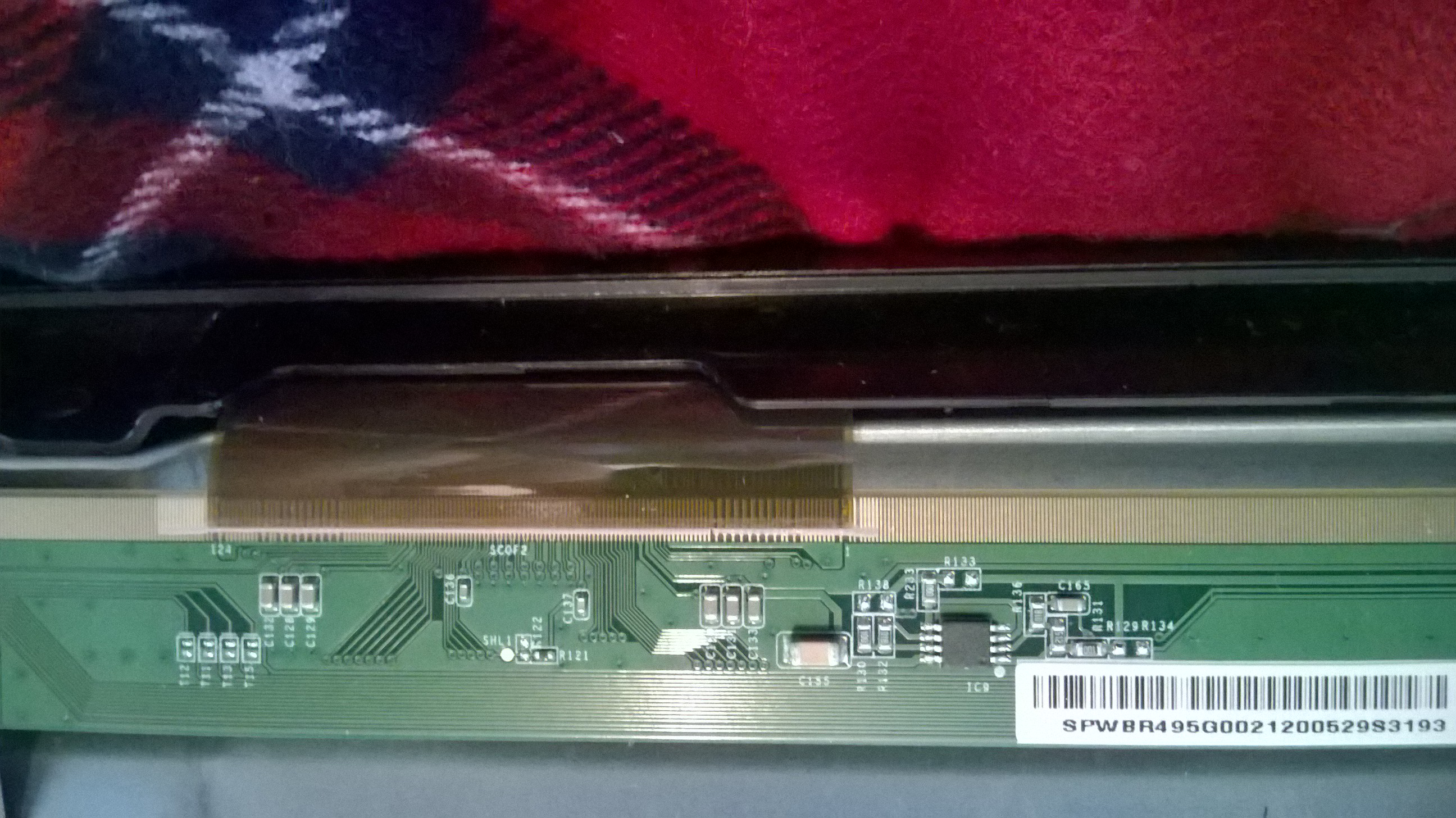 The price was reduced to £15 so I bought it thinking I can sell the parts if I can't get it working. I removed the right hand side cable from the T-con board and I get a good clean half black and half white screen. If I plug and aerial in I get a slightly polorised picture but no striping. When I removed the left hand side cable from the T-con board and plug the right hand side back in, I get striping and no picture. I tried the tape trick but it didn't work. I tested all the caps on the screen buffer boards but there are no shorts. I tested the T-con board (CCPD-TC495-008 V4.0) and Vcom is 6.8v VGL is -5.8 VGH is 24v and VDD is 15.2v.Comment