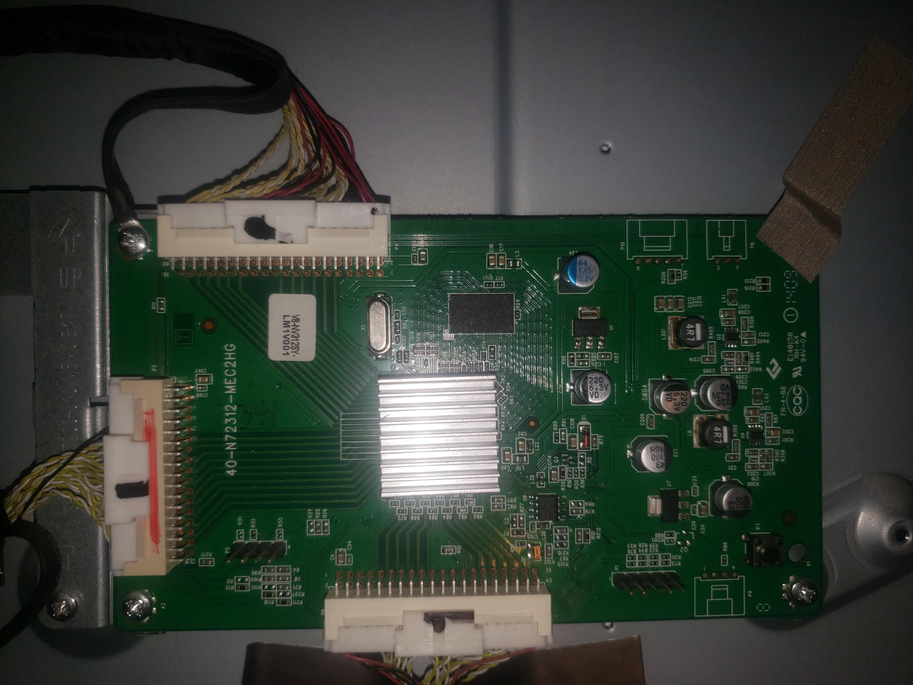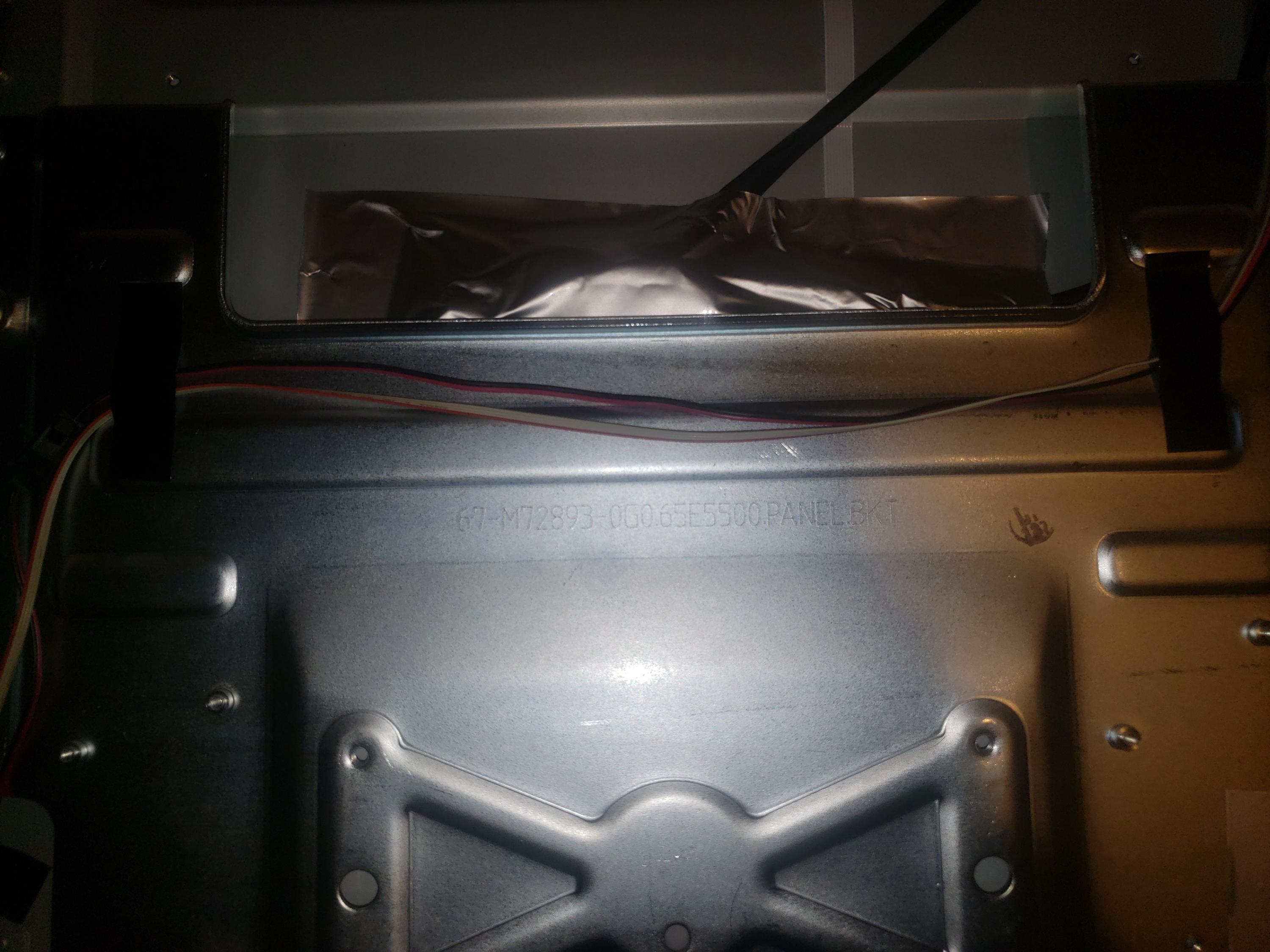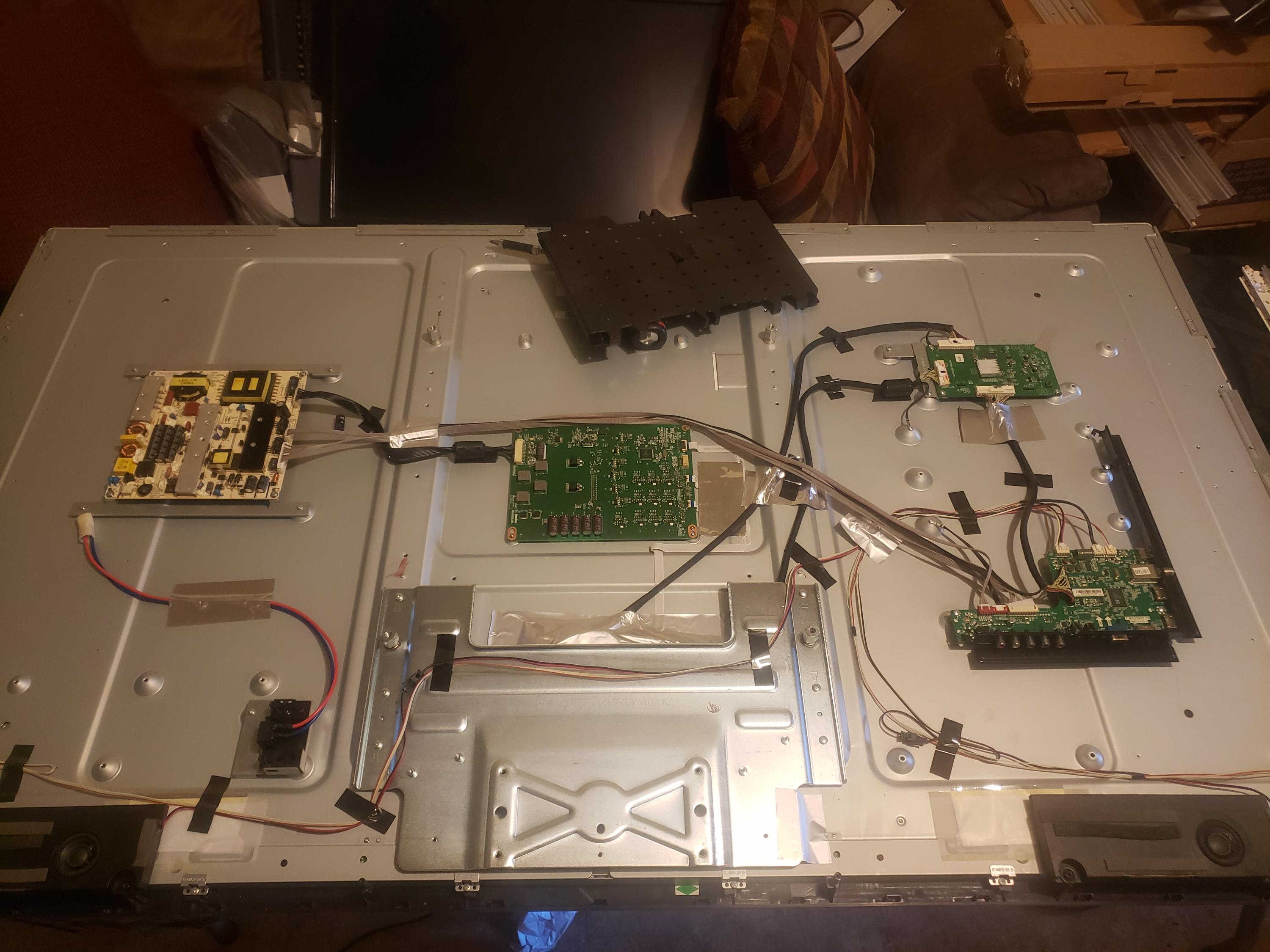by x_orange90_xI just removed the back cover to test the backlights because when I first plug it in it will flash once and then start dark but I can see the image. I got 131v on string 1 and 167v on string 2. Usually when I get a bad set the meter reads 300v and they won't light up. When testing, each set lights up inside the tv. When I plug in the power and check the leads with my multimeter both strings are only about 3v.