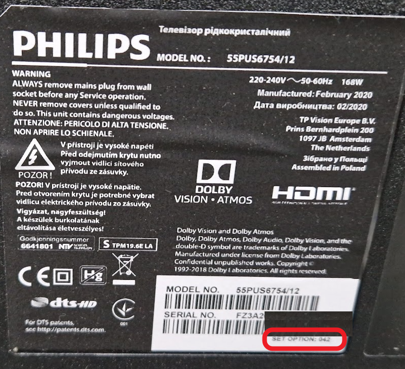 The Set Option on the rear of the TV says 042 as shown in pic.