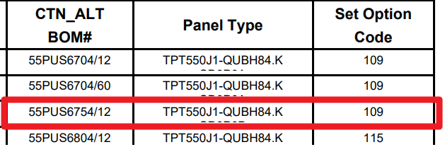 The Service manual lists this model but with another screen with a mentioned Option Code of 109. I assume that I need to use the one on the back of the TV.
