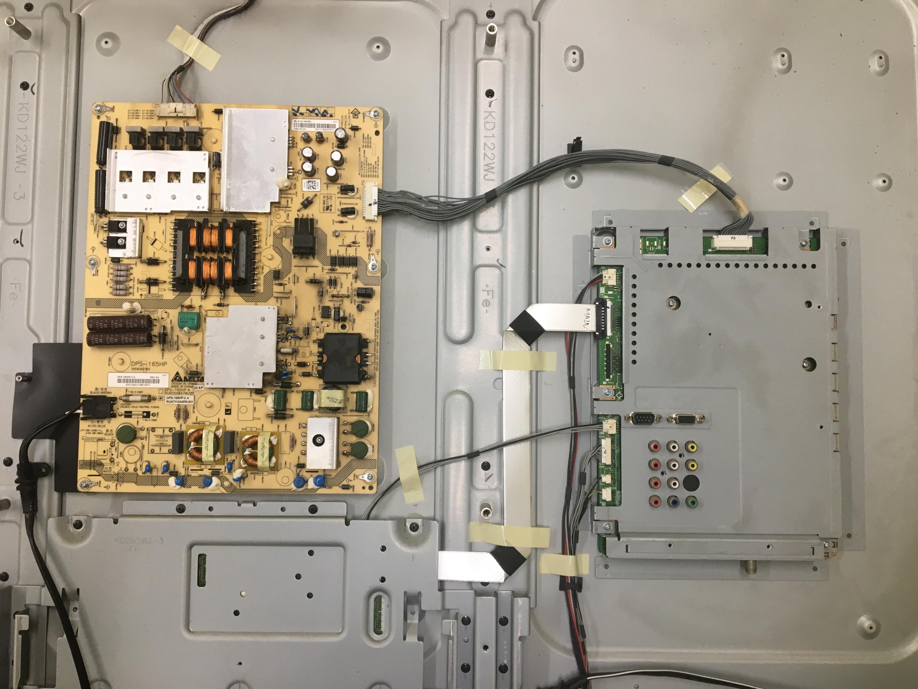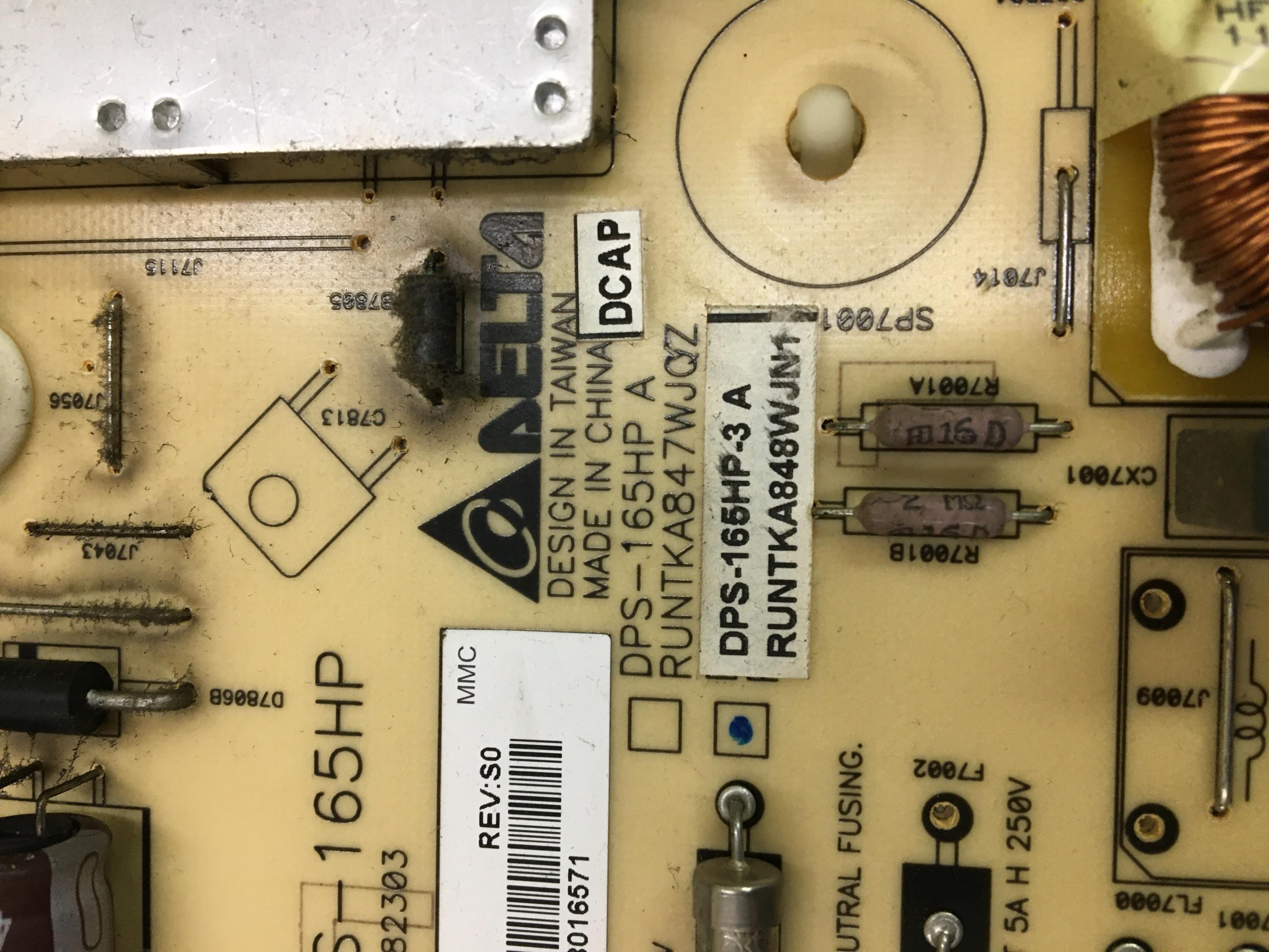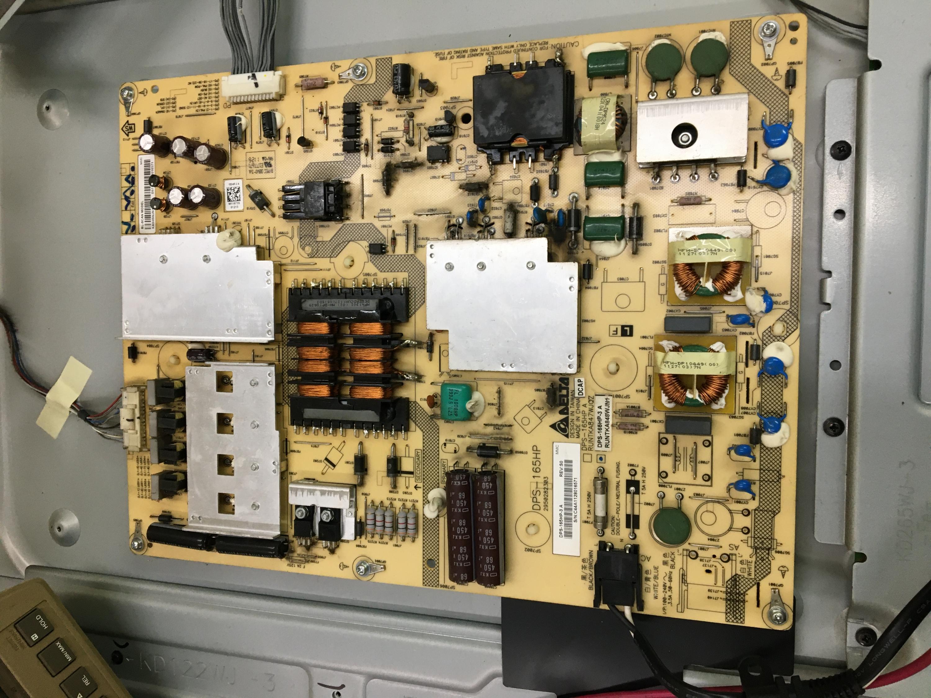 Greetings, I have a Sharp LC-60LE633U when powered up only the V light comes on. I have checked the LED strips and they all light up. When the LED's are plugged into the PS board I get an output voltage of 74v DC. If I unplug the LED's the output voltage on the PS is 184v DC. Does this indicate a weak PS?