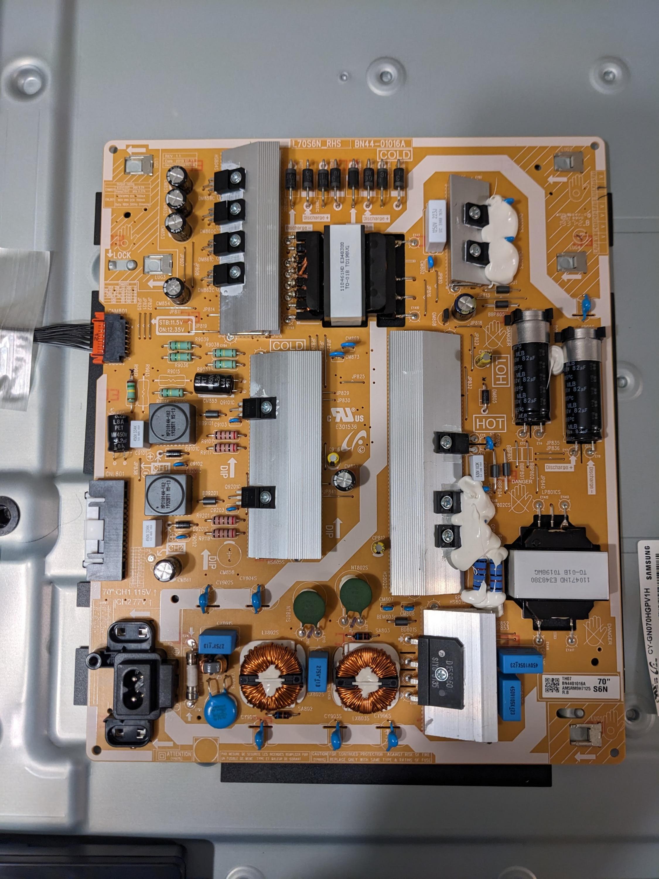 So I've got this Samsung and the reported issue is that when powered on the backlight comes on, but no picture, no sound, it will flicker, the standby light will flash red twice and repeat the whole process...each loop lasts about 15 seconds.