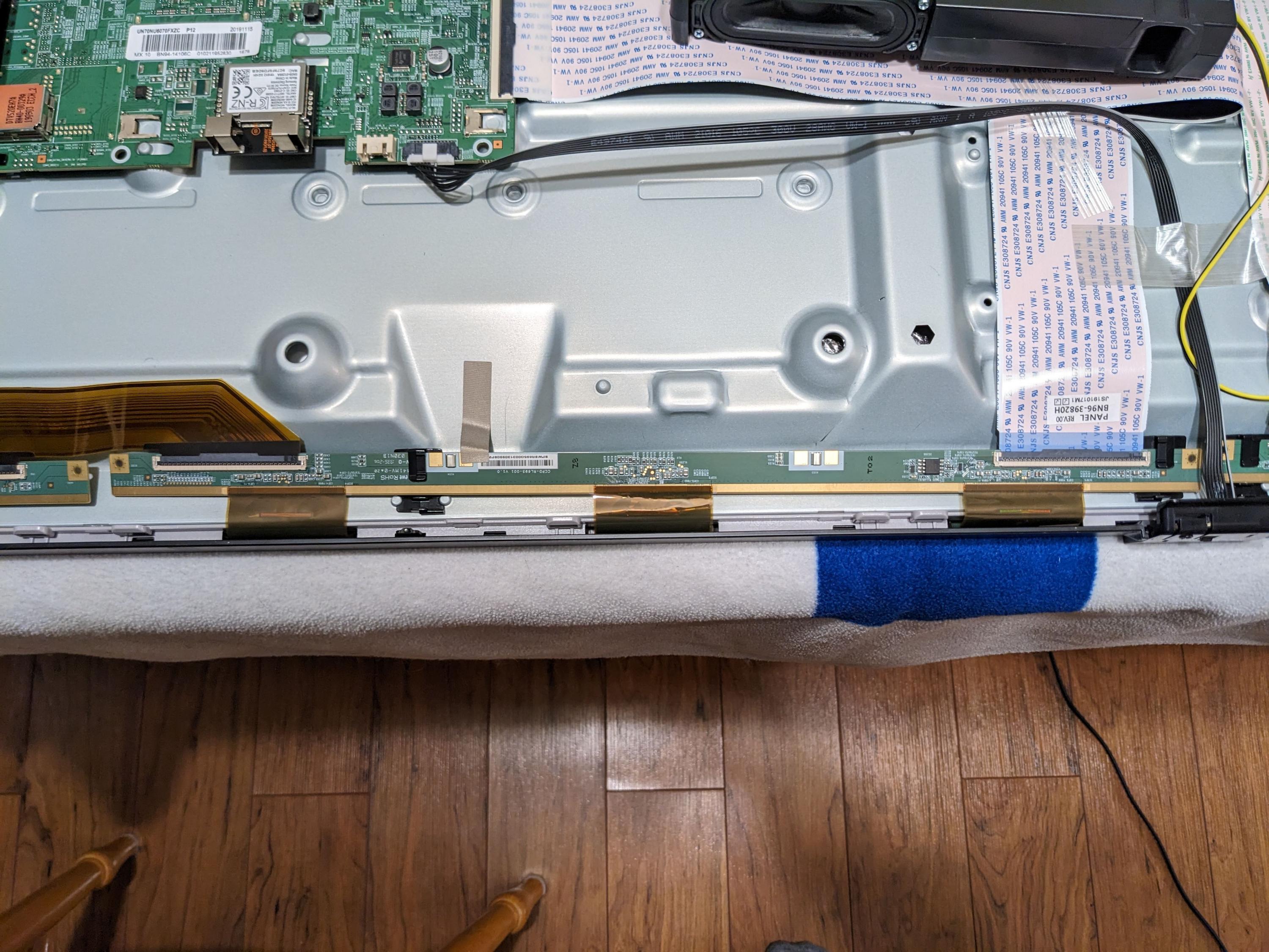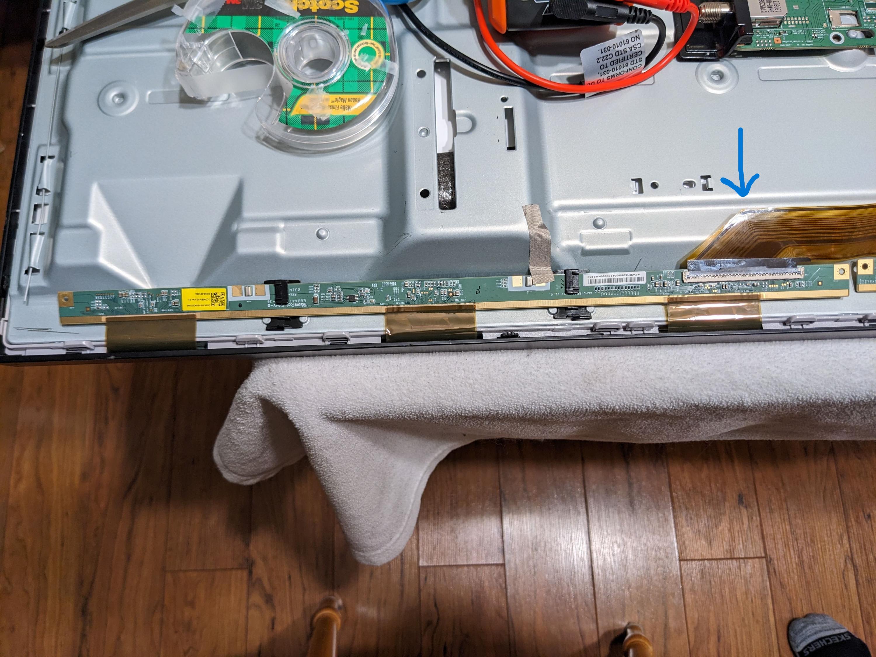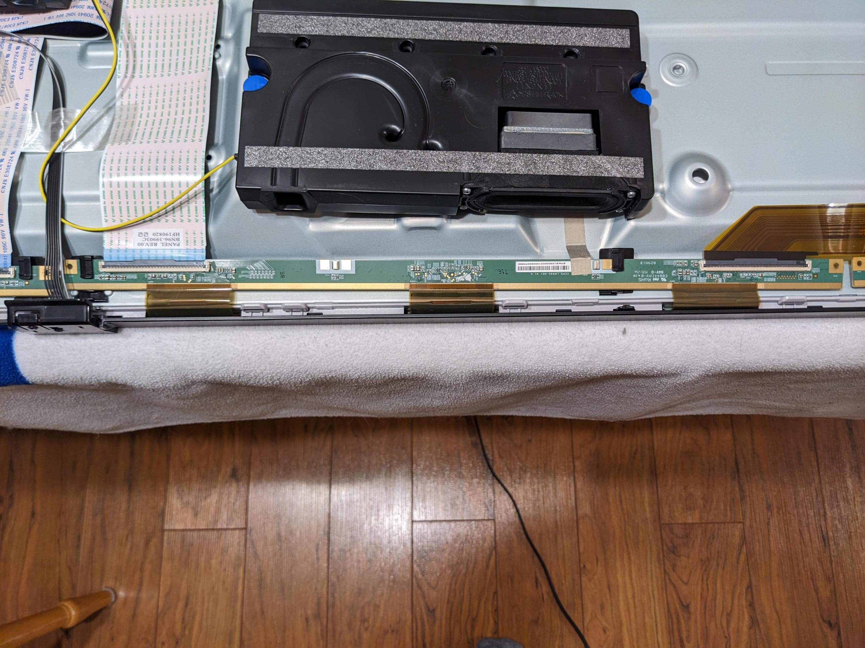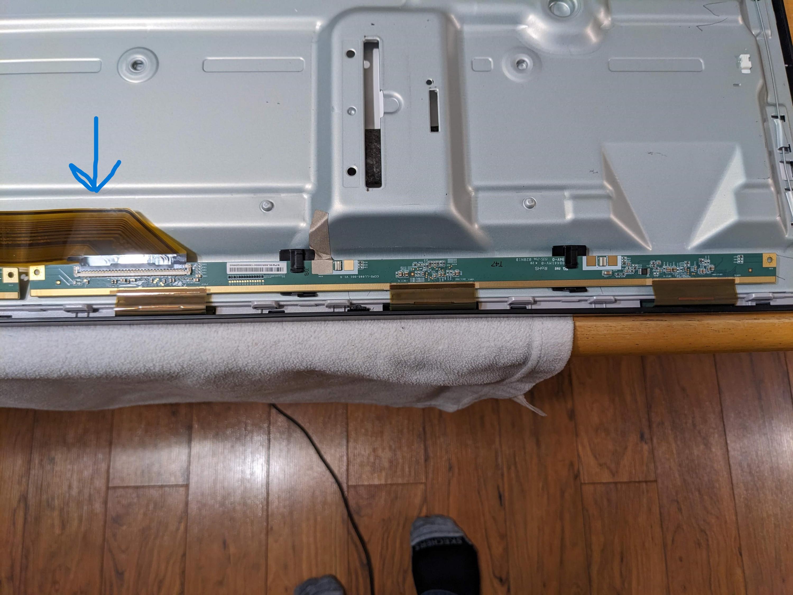 2. With the TV on, unplug the LVDS ribbon cable from the far left OR right driver board.