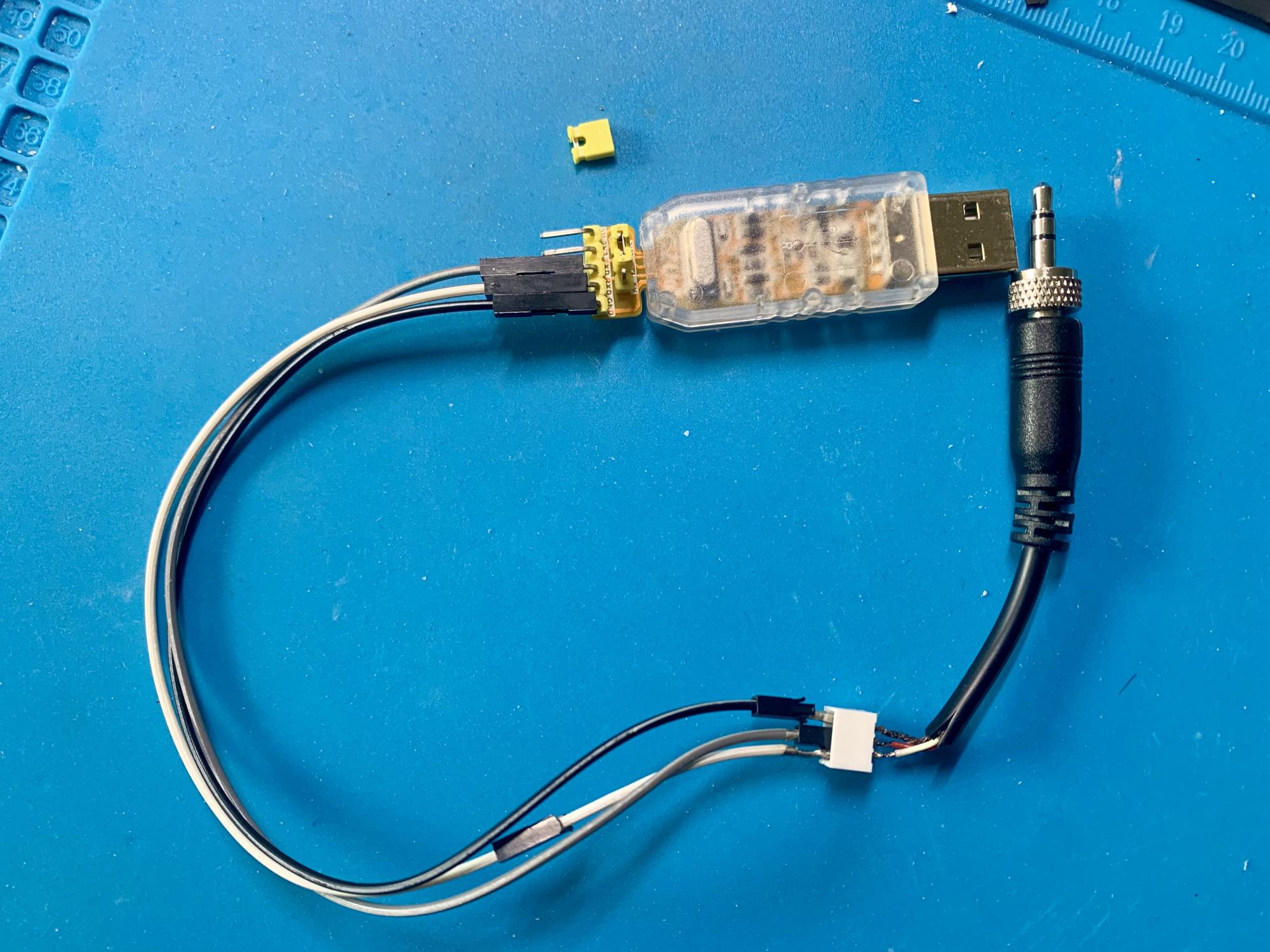 Can buy multiple dongle specs. CH340G is good enough. Set TXD/RXD to 3.3V (use jumper thats pointing up. Here is final product