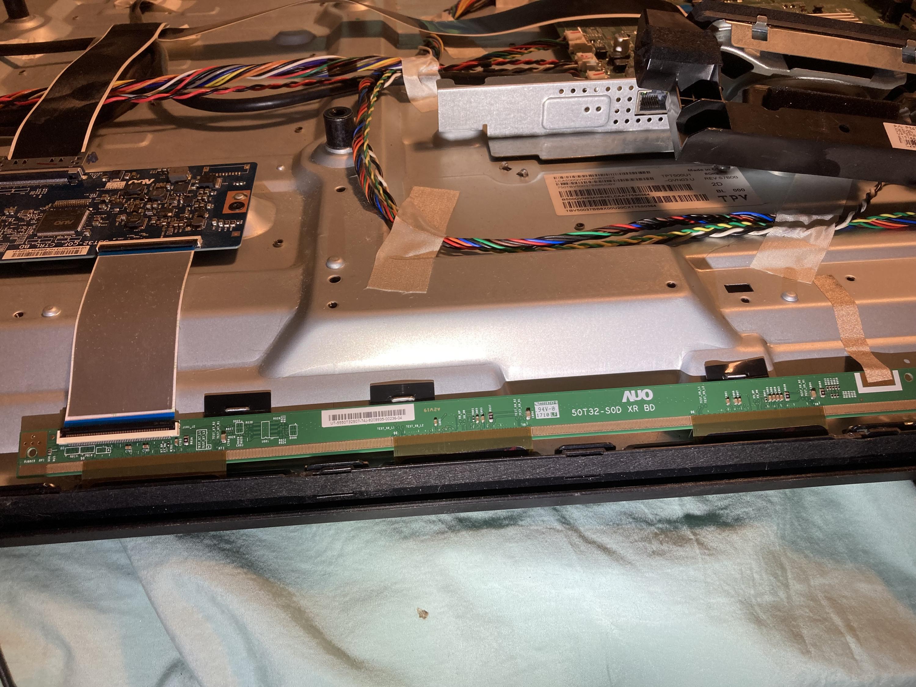 A friend gave me an Insignia NS-50DR620NA18 50" TV that suddenly developed large vertical lines on it. He said he had no idea what might have caused it and has replaced it with a larger TV. He was going to throw it away.
