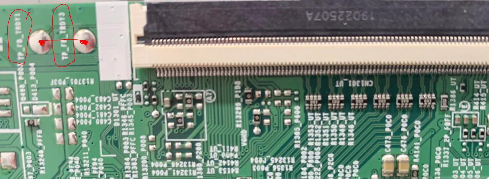 So I try tape method and got the tv to stay on and not rebooot but no picture.