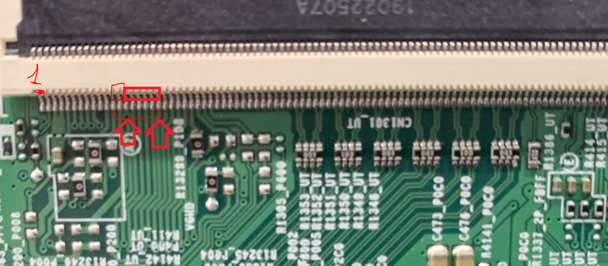 I circled the lvds cable that I taped and marked the side of the cable that I covered with tape on the first pin to get it to stay on.