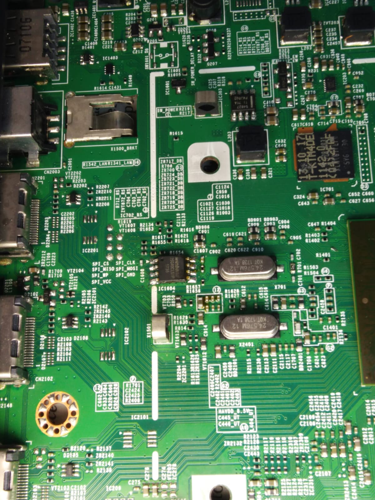 According to the Service Manual all the voltages looks good, so I made a backup of the internal flash and all the EEPROMs (1 Settings + 3 EDID) and cleaned the EEPROM.