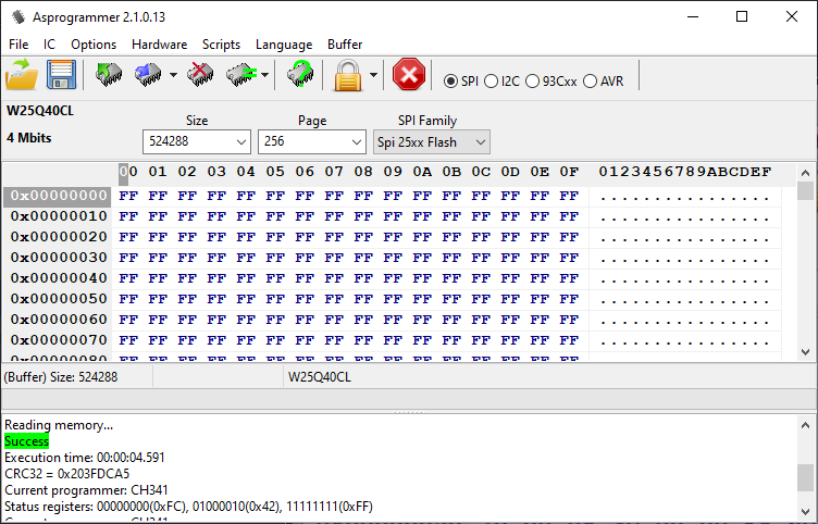 So I attached the VGA UART cable and read the debug data using a RT809H programmer: