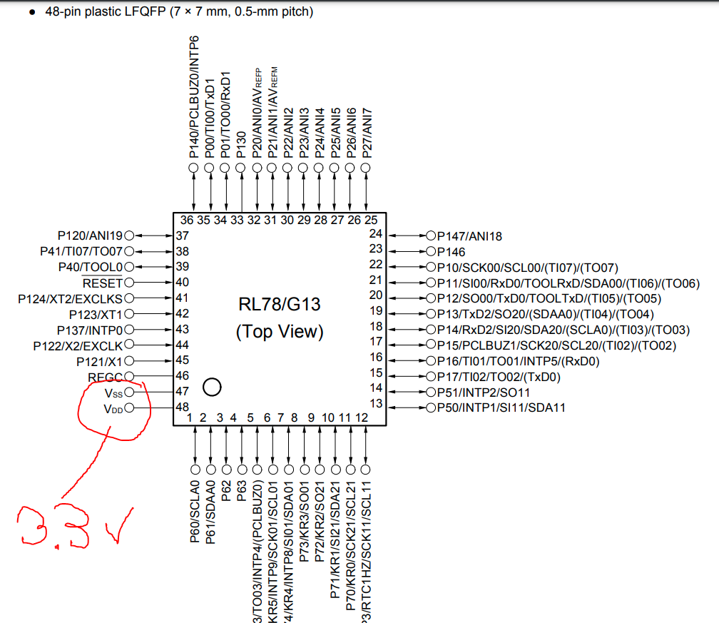 Check if there is voltage between pins 47 - 48, should be 3.3v.