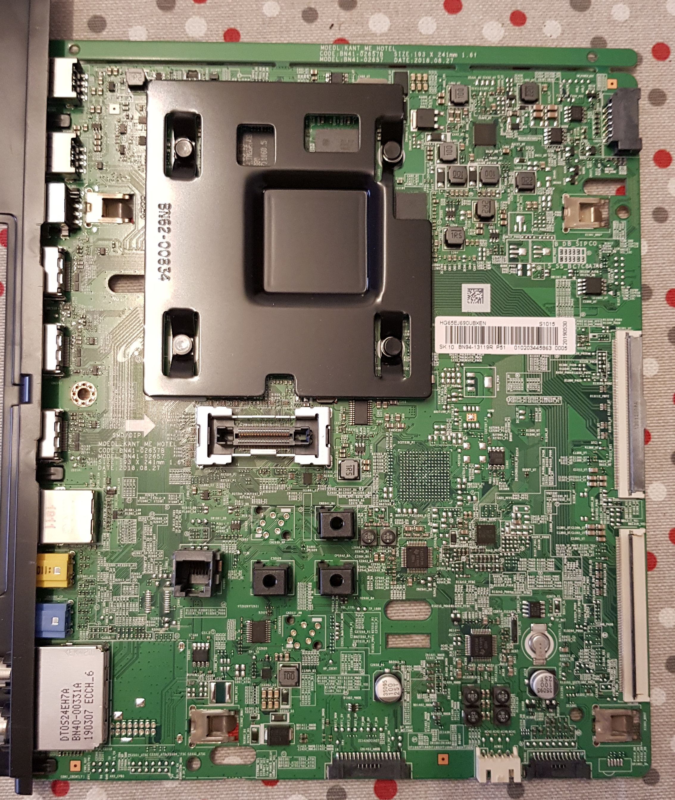 The panels work well with her Hotel Main, of course. And I have verified that both the Hotel Main and the domestic one use the same panel, original from Samsung, the 65A6AU0NN.