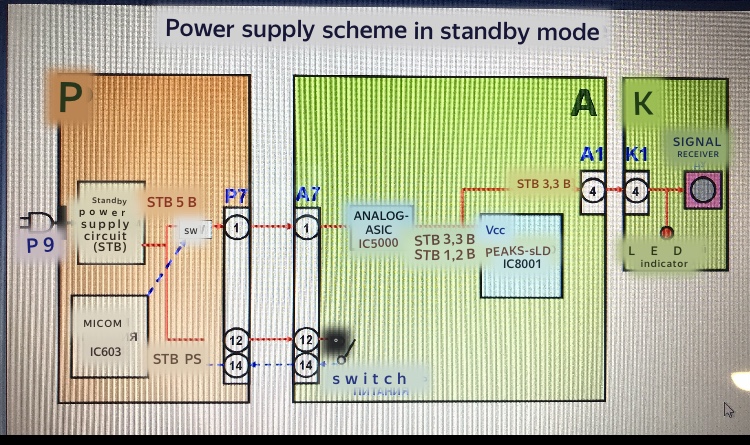 Could it be the main A board? I was expecting to see the 5V and the 15V DC on the power board even if the A board is defective or disconnected, am I right?