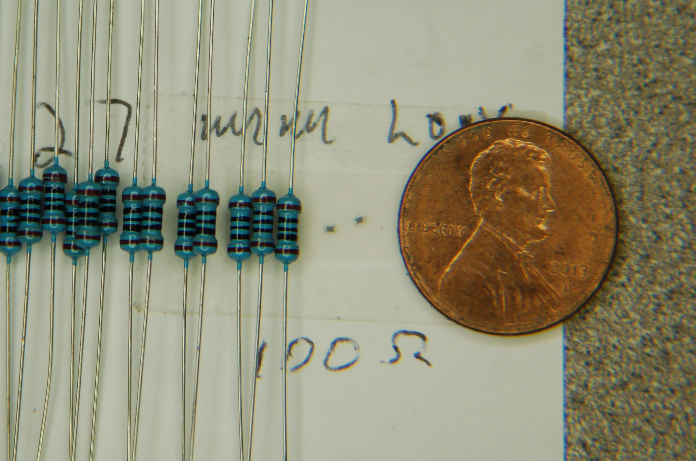 My needle nose soldering iron and the 0805 100ohm resistors finally arrived. After a lot of trial and error, 0805 resistors are still pretty small, I think I have stumbled on a way to solder a lead wire on to the ends of the resistor, scotch tape. I tape half of the resistor to a piece of paper then scotch tape the tiny wire leads down so they lay on the edged of the resistor for soldering and with a little bit of flux and a hot soldering iron I can solder the leads on the resistor. Well, it’s not quite that easy but much easier than trying to hold it in place with a tooth pick. Now I have to figure out how to keep the ends in place when I solder the end to the circuit board, they’re so small and short that they become un-soldered from the heat transfer up the short wire. I tried heat shrink tubing but it really isn’t small enough, also thinking about glue or clear paint to keep the resistor end in place when I solder the other end to the circuit board. I have done some end to end like most resistors but they are so “big” that there isn’t much room for the wire and I know they will melt both sides of the wire and fall off. So I am going to try edge soldering in hopes of being able to get the resistor further away from the soldering point. (see pictures). I might try gluing the resistors in place in hopes that the glue will keep the wires connected at the resistor when I solder them in circuit. I will keep you updated when (if) I successfully solder the resistors in place. Have a great 4th of July. Regards, Gil