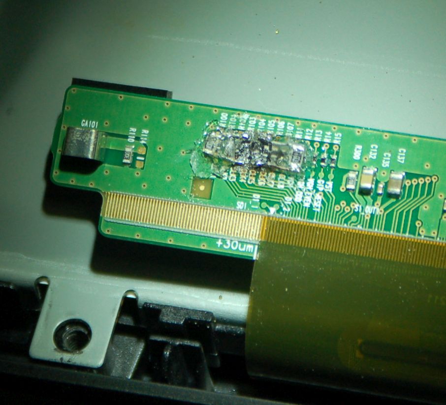 Hi Howardc64, The Resistors on the Left side appear to be OK (see pictures). I just purchased from eBay some 0805 100ohm resistors and a digital soldering iron with adjustable heat settings in hopes that it might enable me to reinsert the burnt resistors. Thinking back, when I was masking off the ribbon cable from the T-Con board I smelled burnt components 1 or 2 times. I am wondering if I was the source of the burnt resistors because even though I tried to be careful, I may have not reinserted the ribbon cable correctly. Anyway, I am just second guessing myself right now. Thanks again for your help. The “new” resistors and soldering iron should arrive the middle of next week. Regards