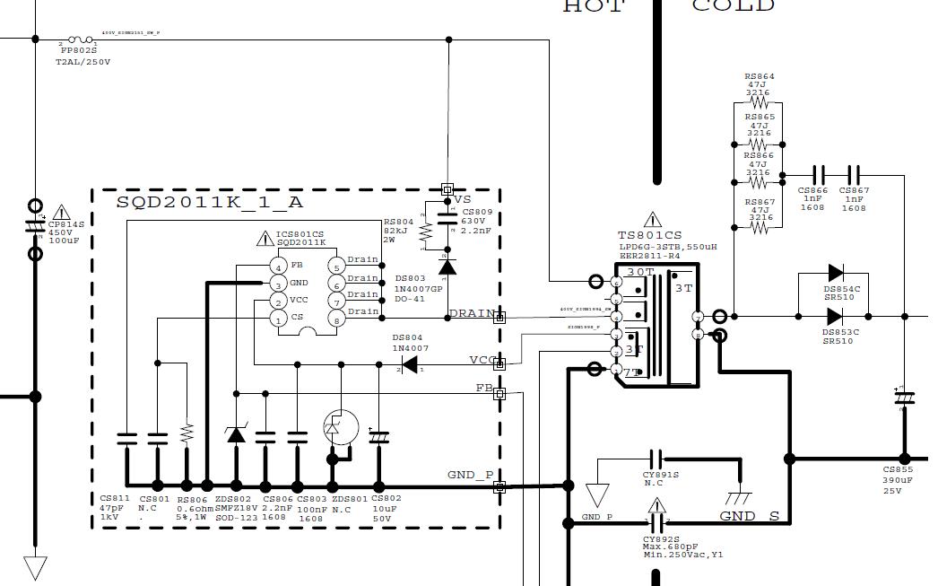 I will try again... Check the voltage ACROSS CS809, this is the standby circuit supply voltage (165VDC)