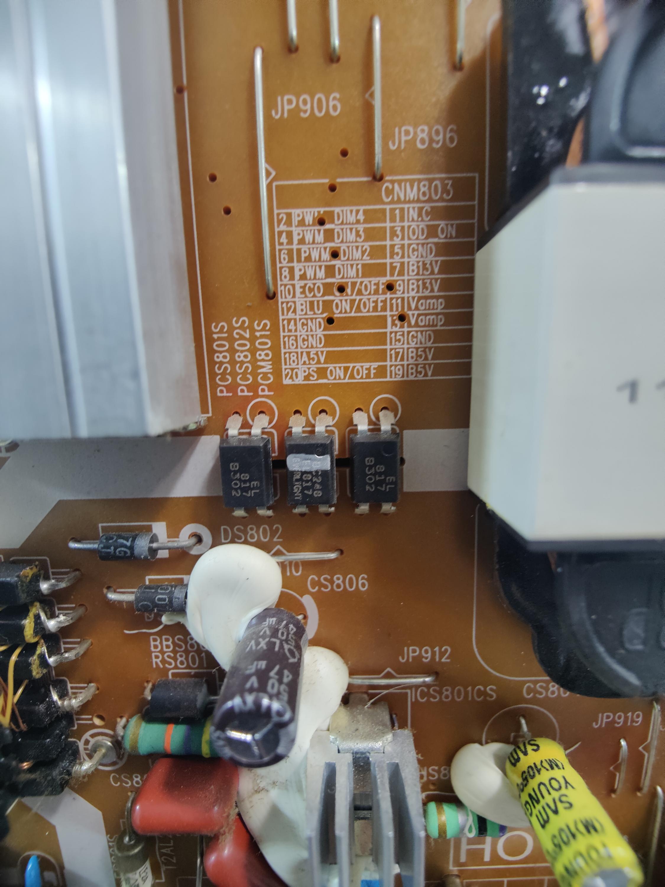 Power Supply BN44-00621A Dead, no voltages on CM803, fuses OK, Transistors with heatsink OK, Diodes OK.