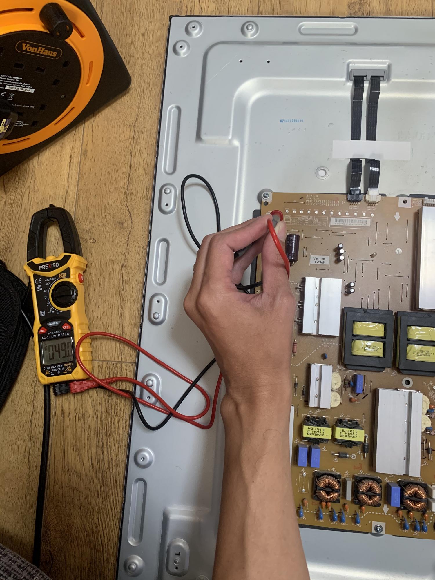 My tv model is lg 55ub850v and the backlight s totally off. My psu got 5 led light flashing and measured p211+p210 and the 28 pins port on psu and the 24 pins port on mainboard, it had 47v, 3.5v and 12v+24v when pushed the button to turn on tv but the voltage on f2 fuse of t con s only 0.895v.