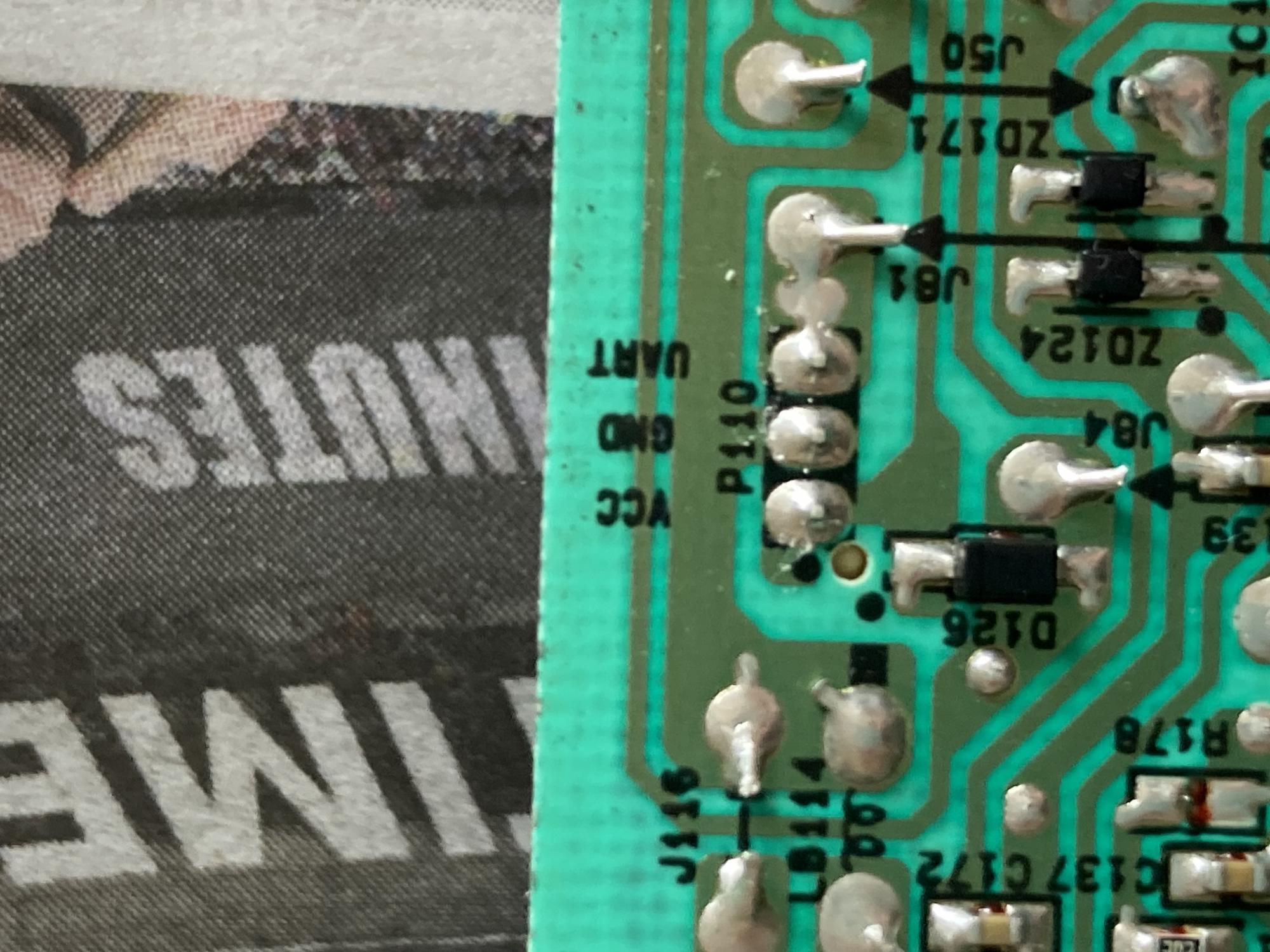 Both those diodes test fine when removed from the circuit so I'm happy with things up to that point. Capacitor C624 sits in between those 2 diodes.