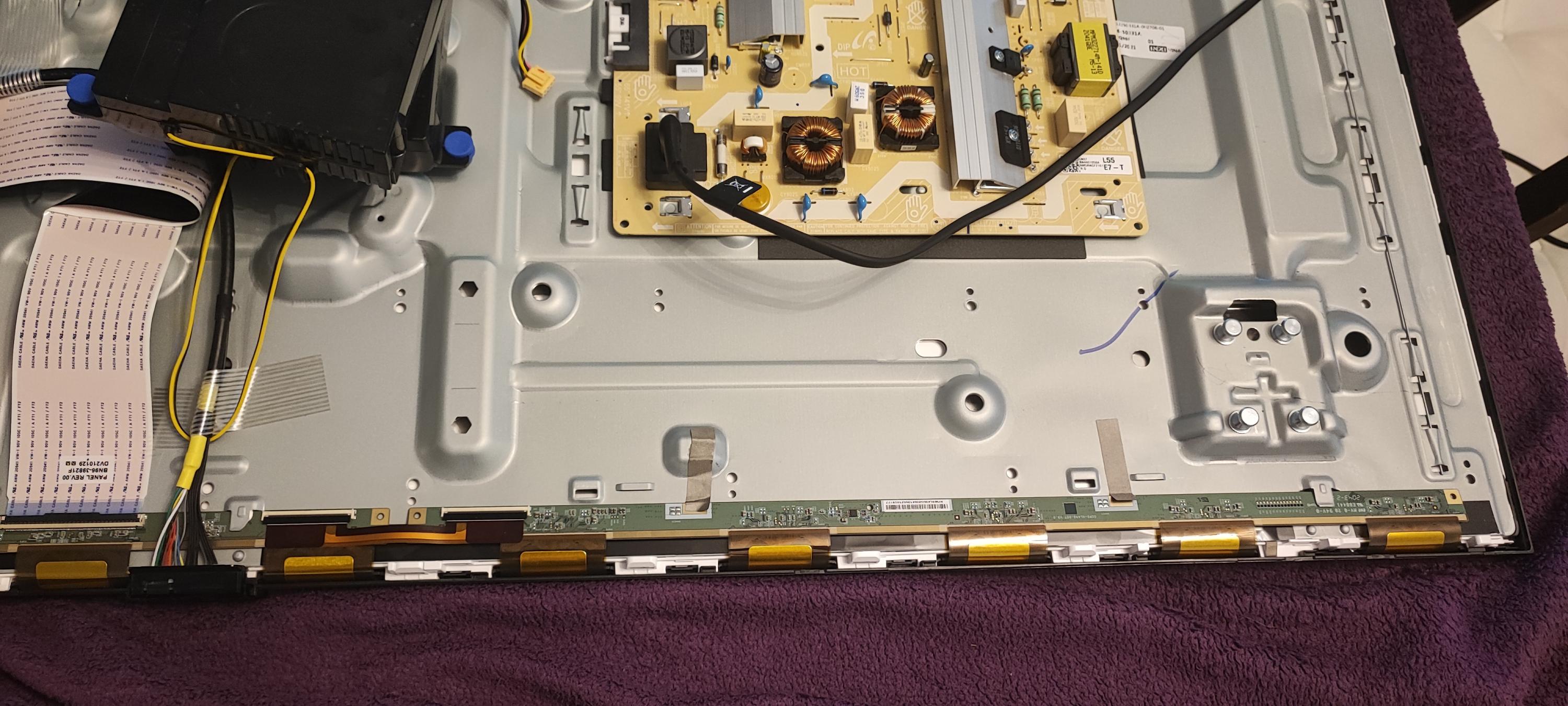 When I disconnect one ribbon from the t-con I should get half picture working and other half black or something like that correct? But when I disconnect the ribbon on one side I just get a dark screen and it doesn't matter what side I disconnect. I just get the dark screen. No half working, no one half black and the other one left. Sound is playing from the TV so it's obviously on and when both sides are connected I have the picture with the horizontal lines so what does this tell me?