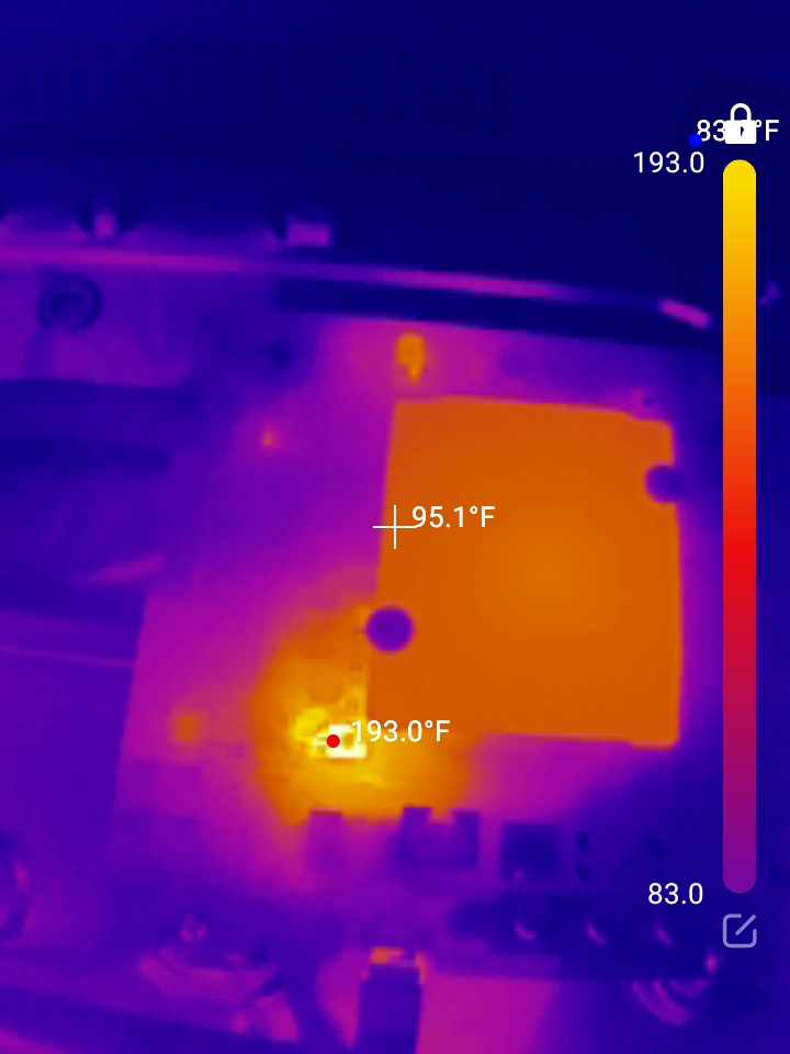 As a note the 4R7 component was getting hot and is the other hot spot seen in thermal. Only 115F but still hot compared to other 4R7