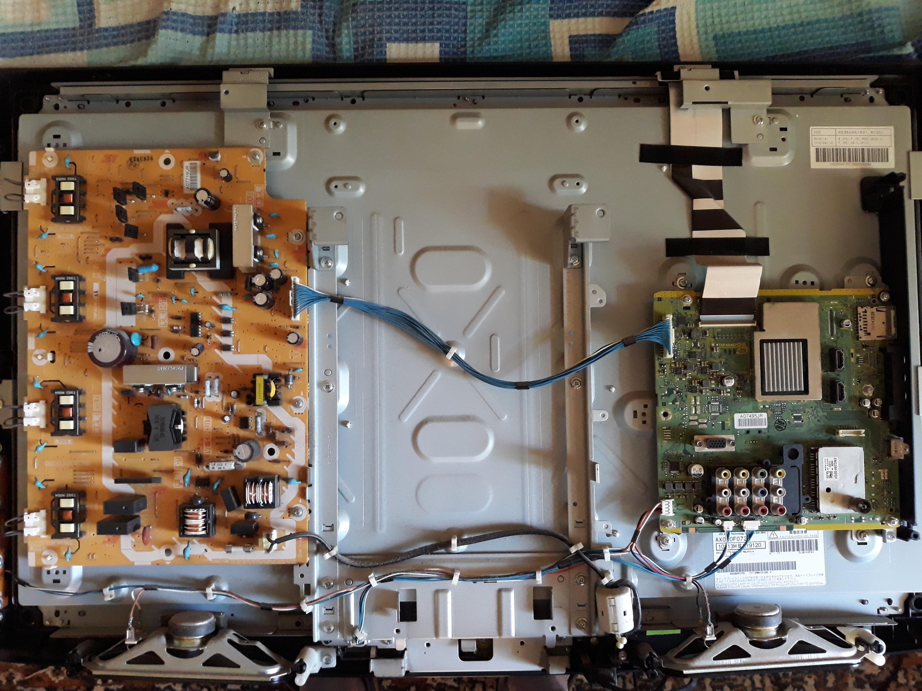 The TV seem to start ( blinking green) but goes into blinking red. No display and or backlight. Full view photo.