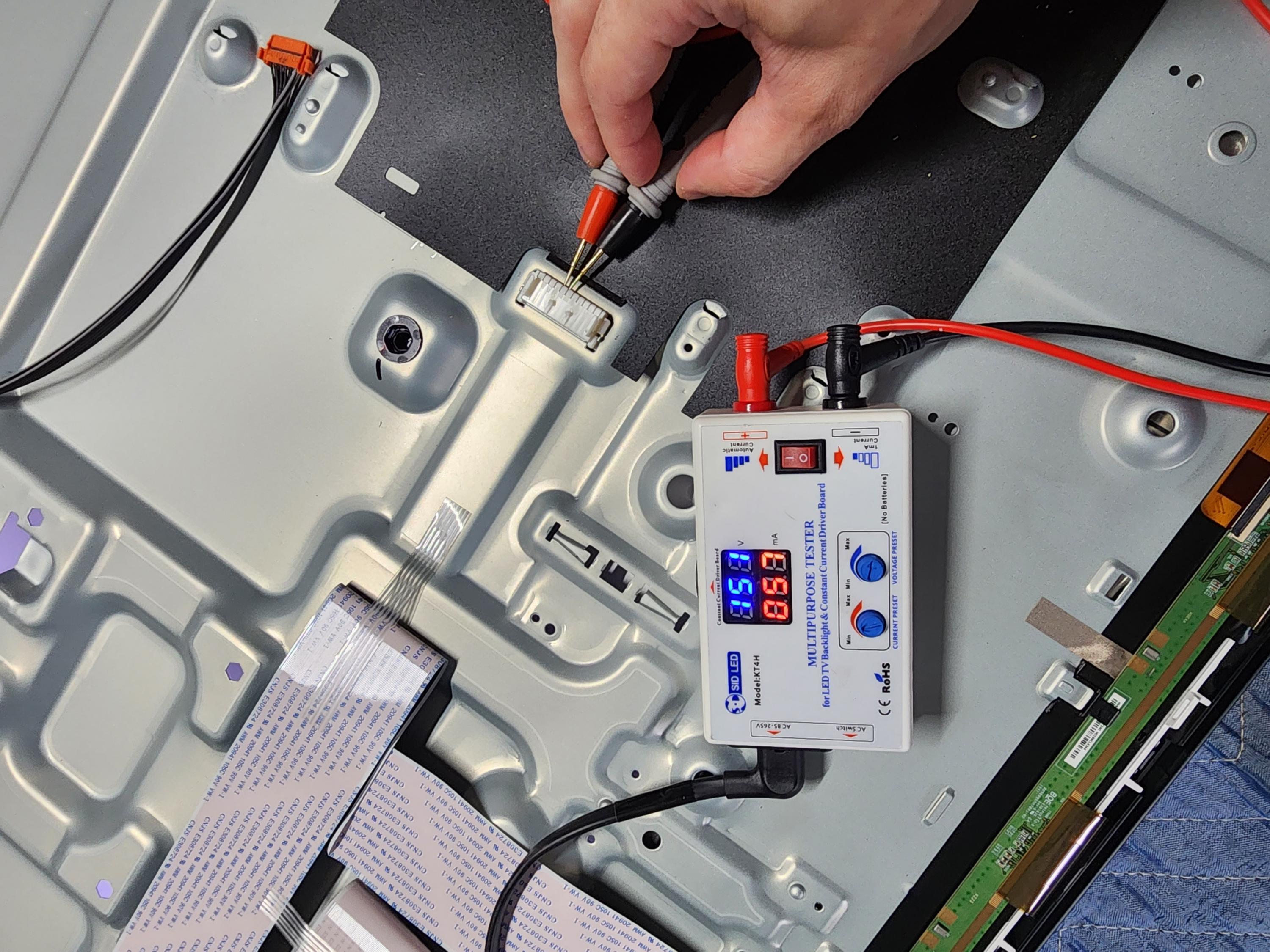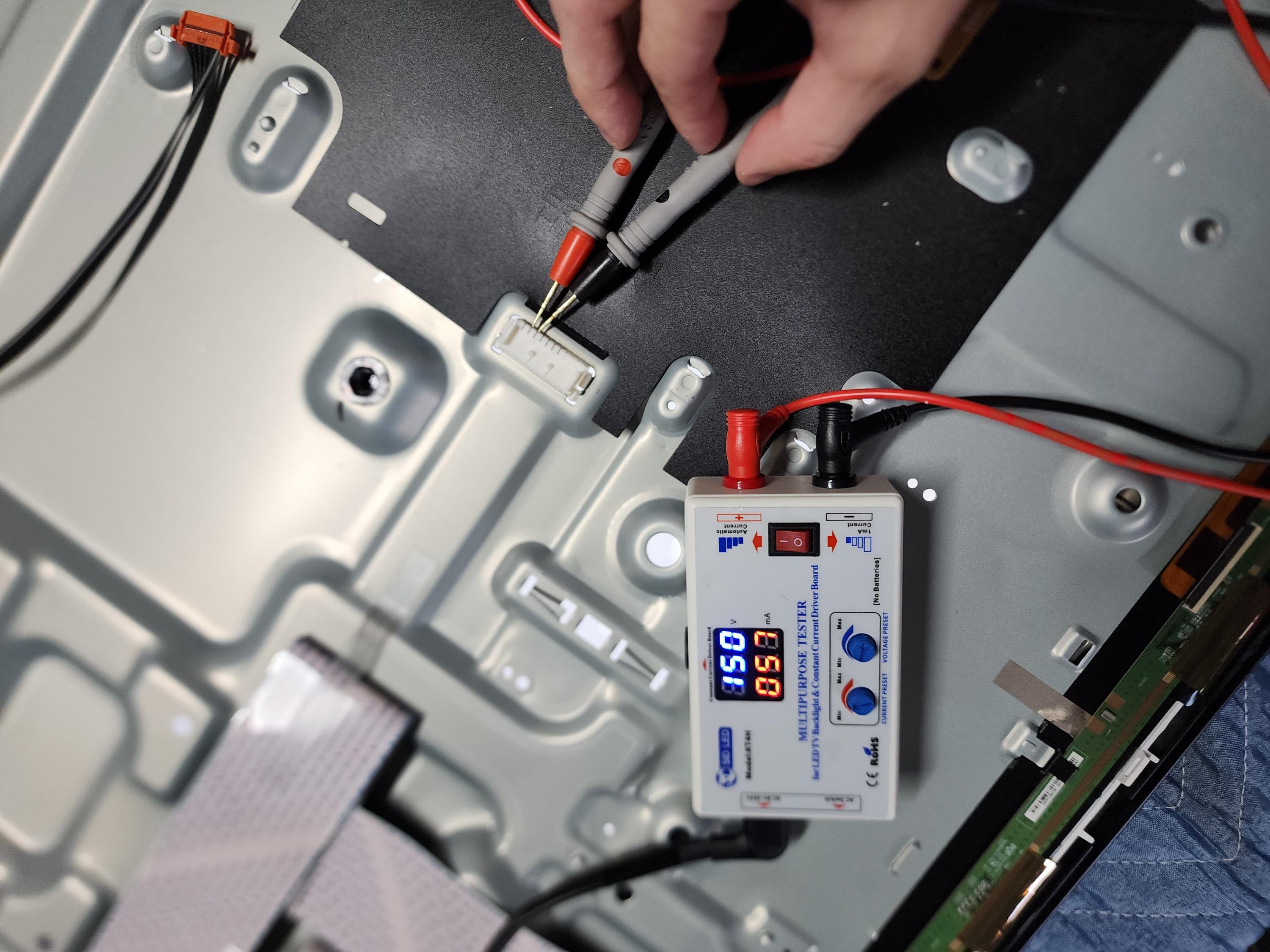 i tested the backlight with my LED tester and it lights up both strips. one of them reads 100v and the other reads 63.7v.