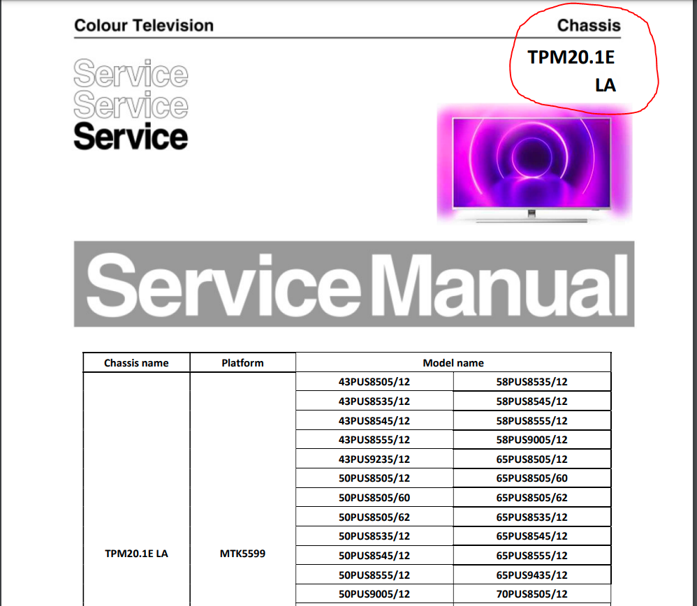 The Tv is a Philips 58PUS8545/12, it had no picture but working backlights.