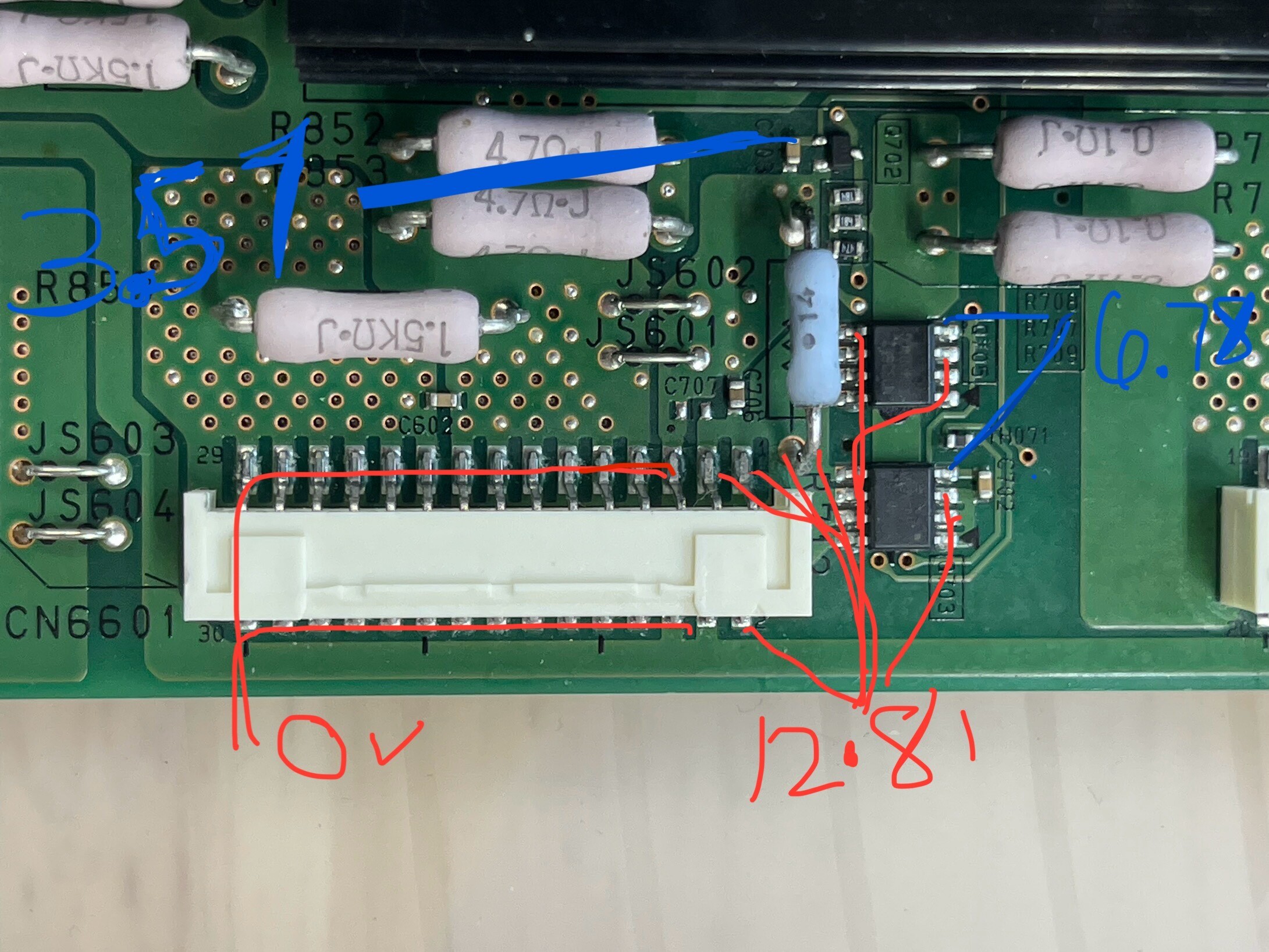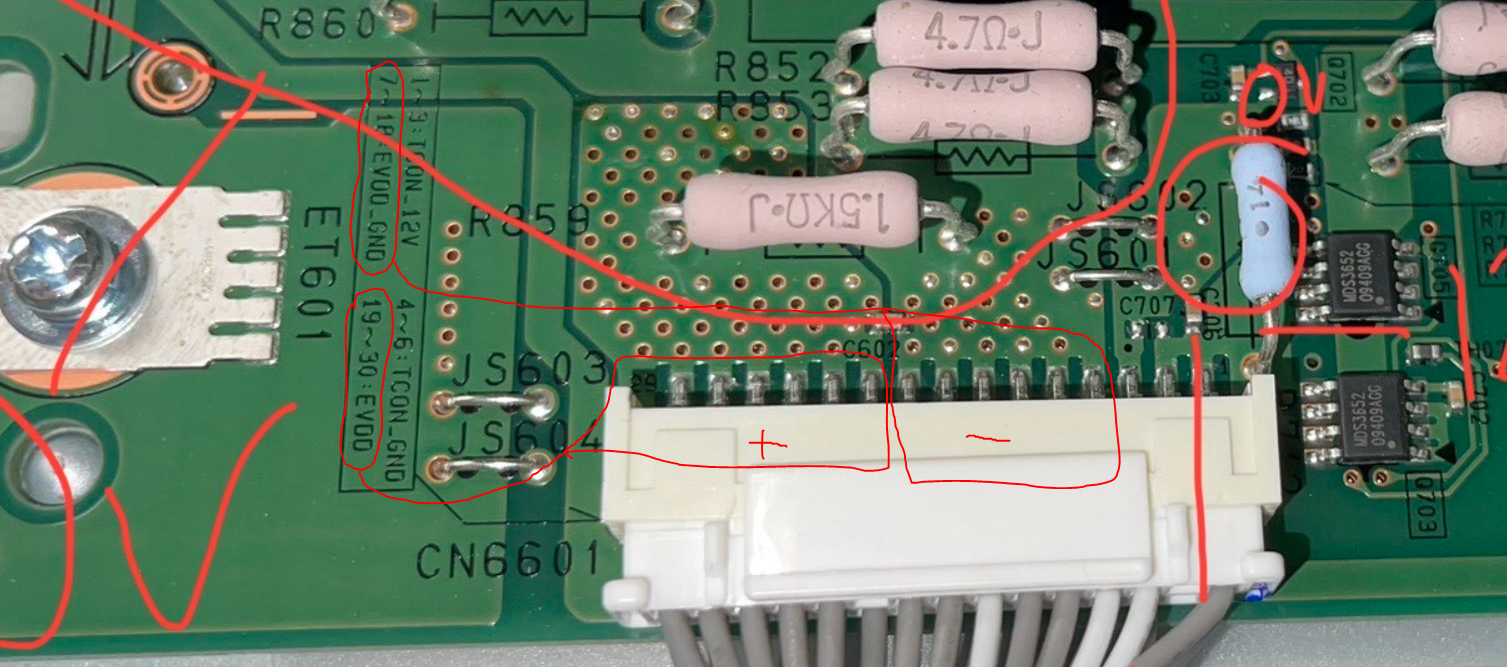 Later both ribbons were disconnected and TCON voltages were tested.