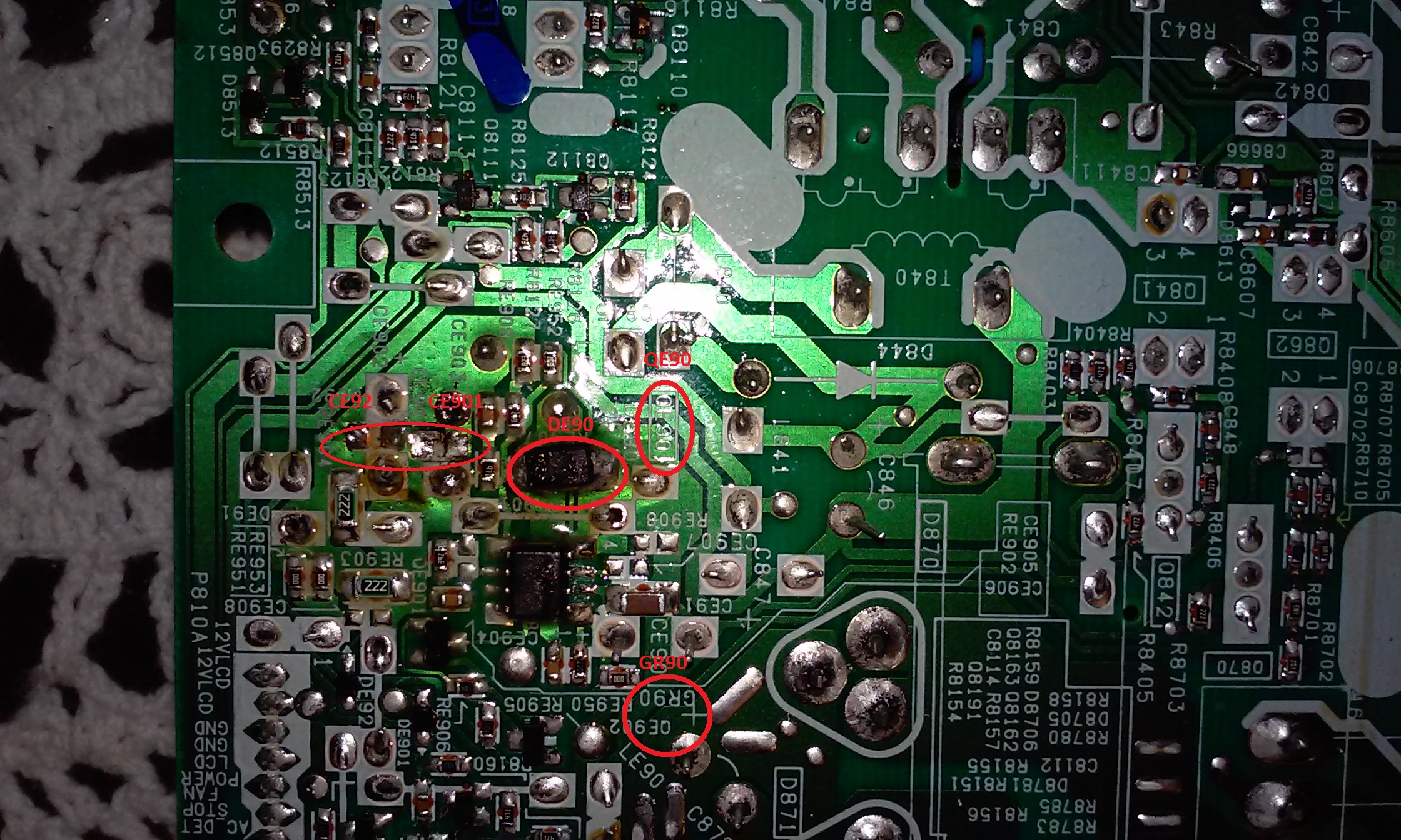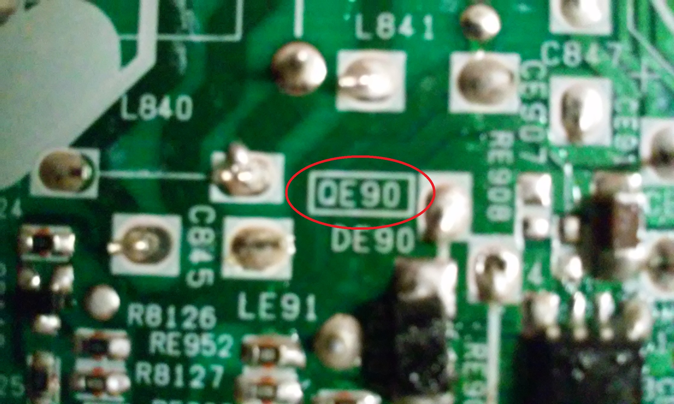 OK, since we do have backlights, then the 24VDC power supply is working, this 24VDC is fed to the IC QE90 through the device GR90. Try to locate that device, one end should be connected to pin 2 of the IC, the other end should be connected to the 24VDC pin of the connector to goes to the inverter board.