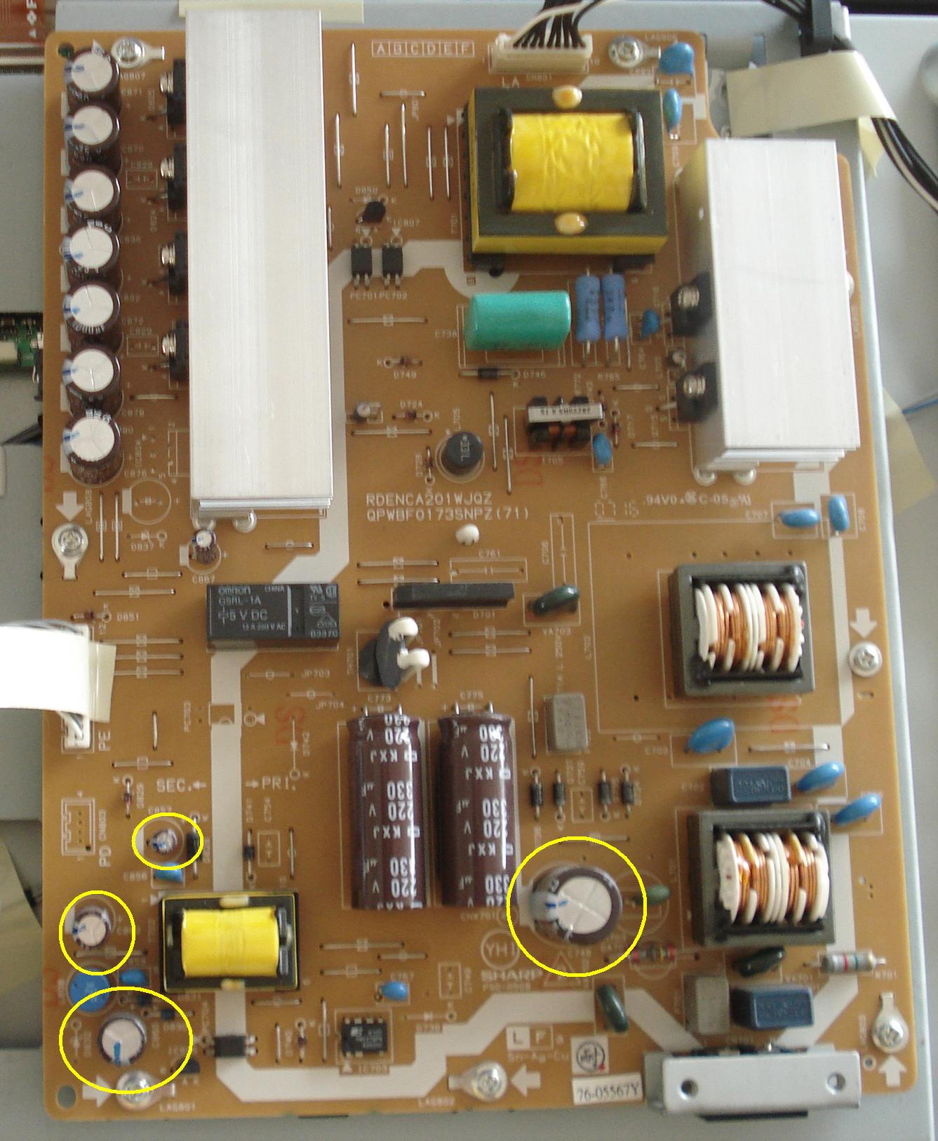 It is very very rare the line filter cap to cause this type of problem, but I have saw the one with the yellow circle instead.Comment