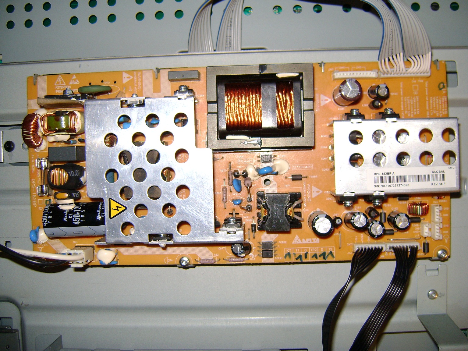 So I looked at the PSU again and realised that the 12V supply fails to rise when you turn the TV on, it will rise to 120mV and shut down again. The PSU board is supplying 5.2V to the main board and the PSU is receiving the 'On' signal from the board but the main part of the PSU won't turn on. The PSU is a Delta DPS-182BPA