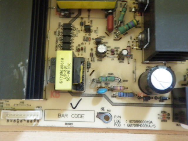My LG Plasma TV model PDP42V8 has gone on the blink. Was watching a program a minute there was a flash - bang and the display + audio was lost. The warranty had expired an year back. So trawled this forum and tried some DIY - opened up the TV - discharged all the caps and did what a good mechanical engineer does - gave a close once over using EYEBALL MK 1. Nothing - all the caps look good - except for some discoloration along the power supply board - have attached the following photos - please advise.