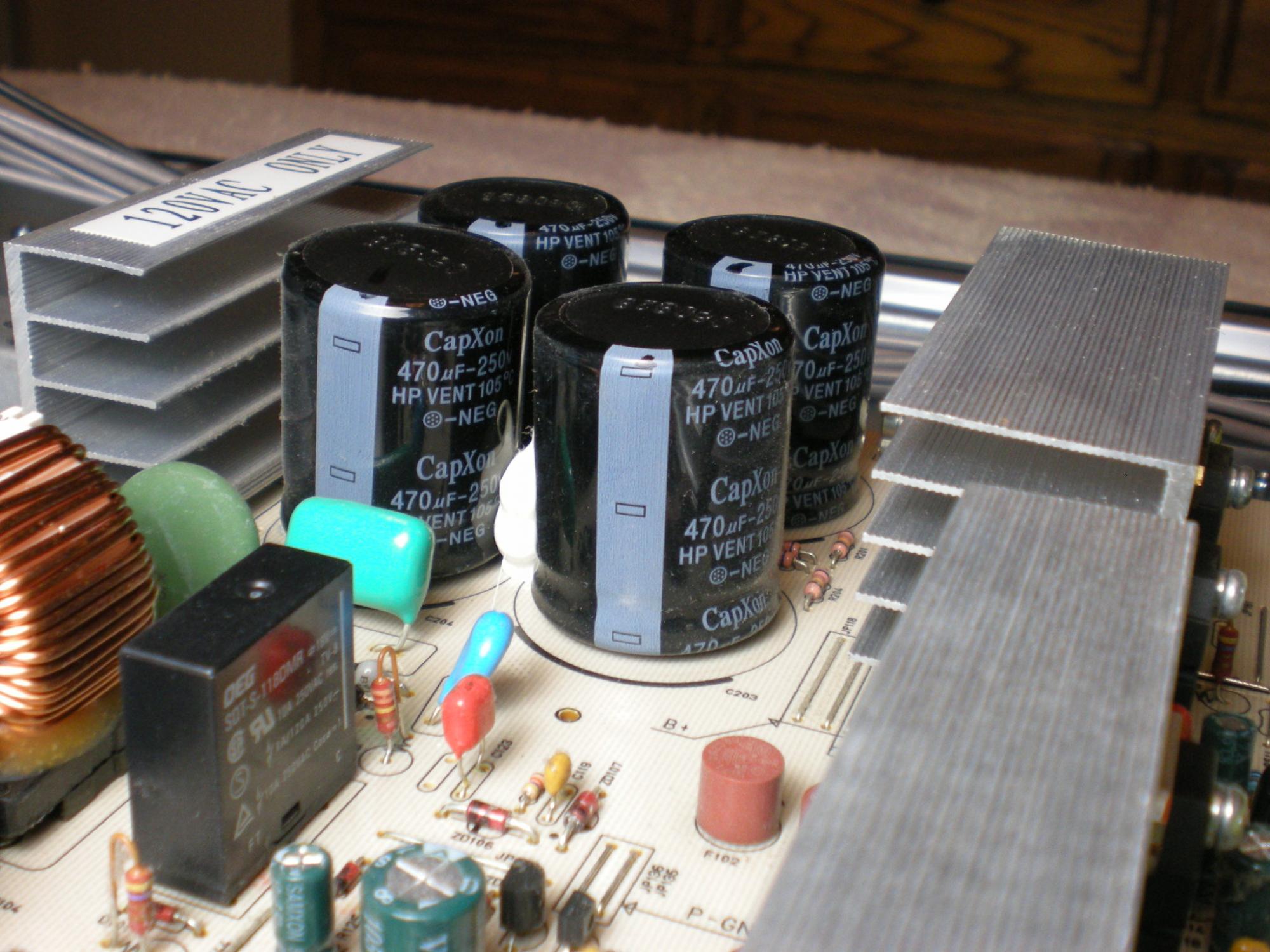 - 3 of the large black CapXon are very slightly bulged - all of the large caps are CapXon