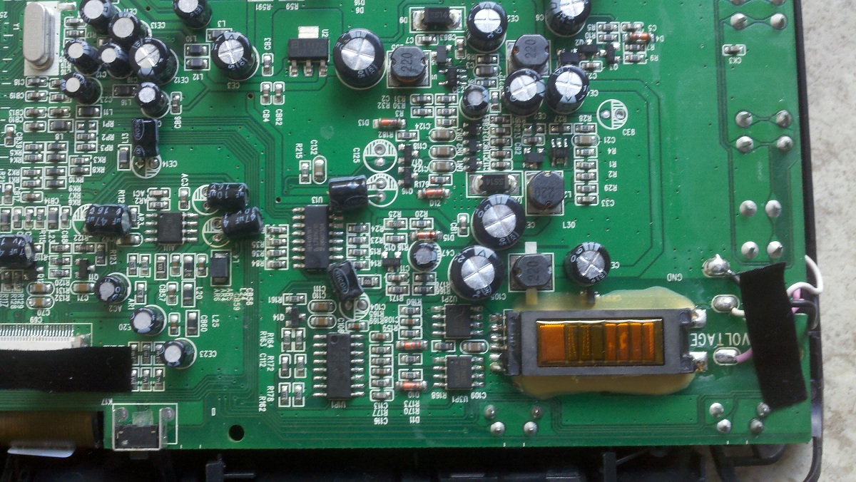 Hi, sorry if this is in the wrong section, but it seemed appropriate enough. I'm trying to fix this digital picture frame... it powers on, but the screen just flickers and stays dark. I took it apart to inspect and found that it created a hissing noise like that of a blown capacitor... however the noise seems to be coming from the inverter transformer (I google that component, so please correct me if i'm wrong - the copper wound bar thingie in the picture I'm posting) and all caps seem fine. I have no problem replacing it, but I just can't find the part online. Can anyone tell me how I can identify it to replace? There are numbers on the side, but they yielded no results in google. They were 39-91-066RAG T-1221A.