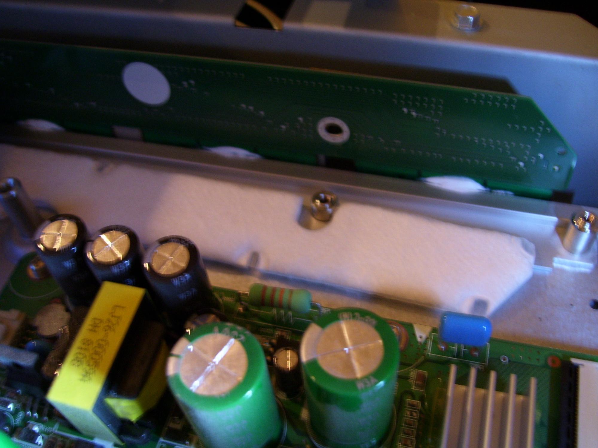 I bought the Sanyo to see if I can repair it. It has a group of vertical lines slightly to the right of the center of the screen. from left to right, The first one is about 1 inch wide and black, then a 1/8th inch wide purple line, then a one inch wide snow line, then a 1/8th inch wide green line, then a 1.5 inch wide black line. The "snow" stripe maybe not a stripe because I donot have the cable connected and the screen is snow. I have seen several posts about these TVs power supply problems and horizontal lines but nothing so far on vertical stripes. Can anyone offer a suggestion?