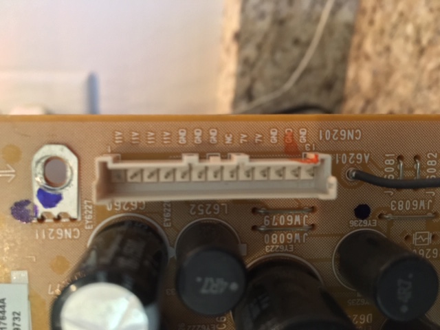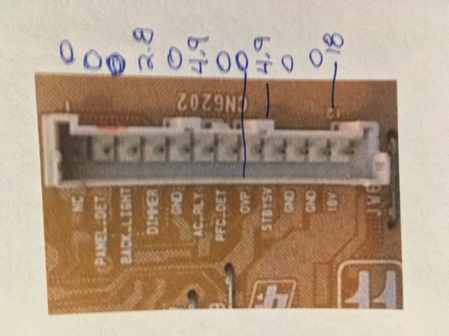 3) TV is still turned on, use red probe to read the Voltage of pin 1 of CN6752 to see if it has 11V dc or not..
