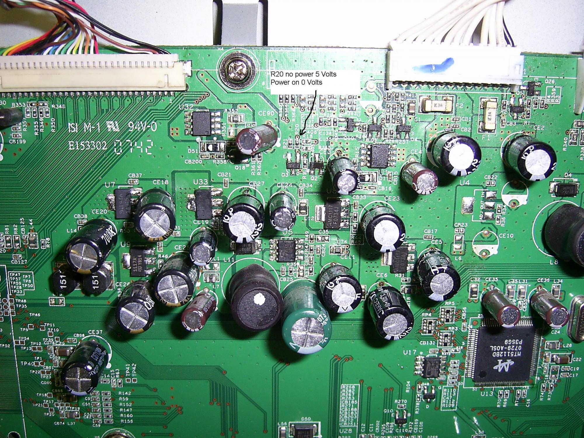 Went through the flow chart in the service manual and think I found a problem at R20 it had 5 volts with no power and 0 volts with the power on.