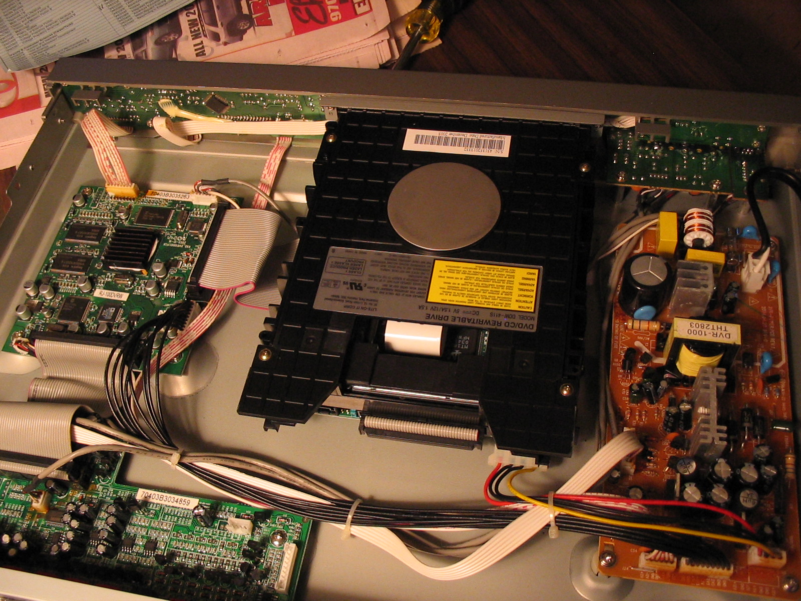 I am recording a program using this DVD recorder and it is 9:30. I will have to mess with it tomorrow. I don't have an ESR tester, so I don't know if any of the possible replacements are good. Two of the 16V I.Q caps should still be good since they were coupling caps for the motherboard's built-in audio amp (the amp was never used).